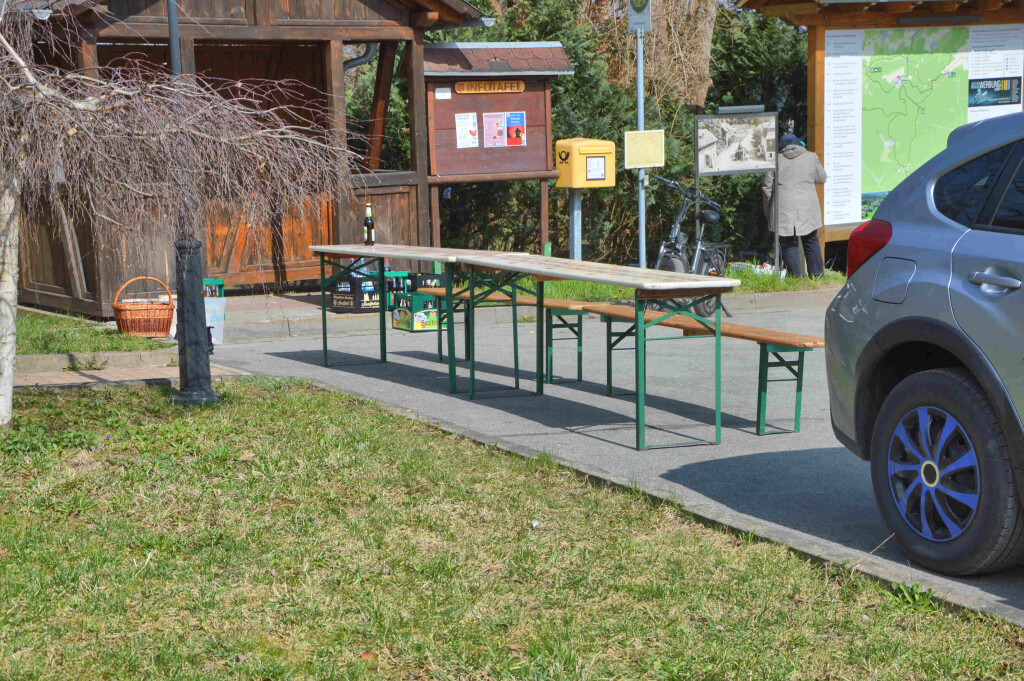 Gegen Mittag – eine genaue Uhrzeit kann ich hier nicht nennen – versammelten sich schließlich alle Helfer und Helferinnen wieder am Vereinshaus. Dort lud inzwischen eine lange Tafel aus Biertischgarnituren zum gemeinsamen Essen ein.