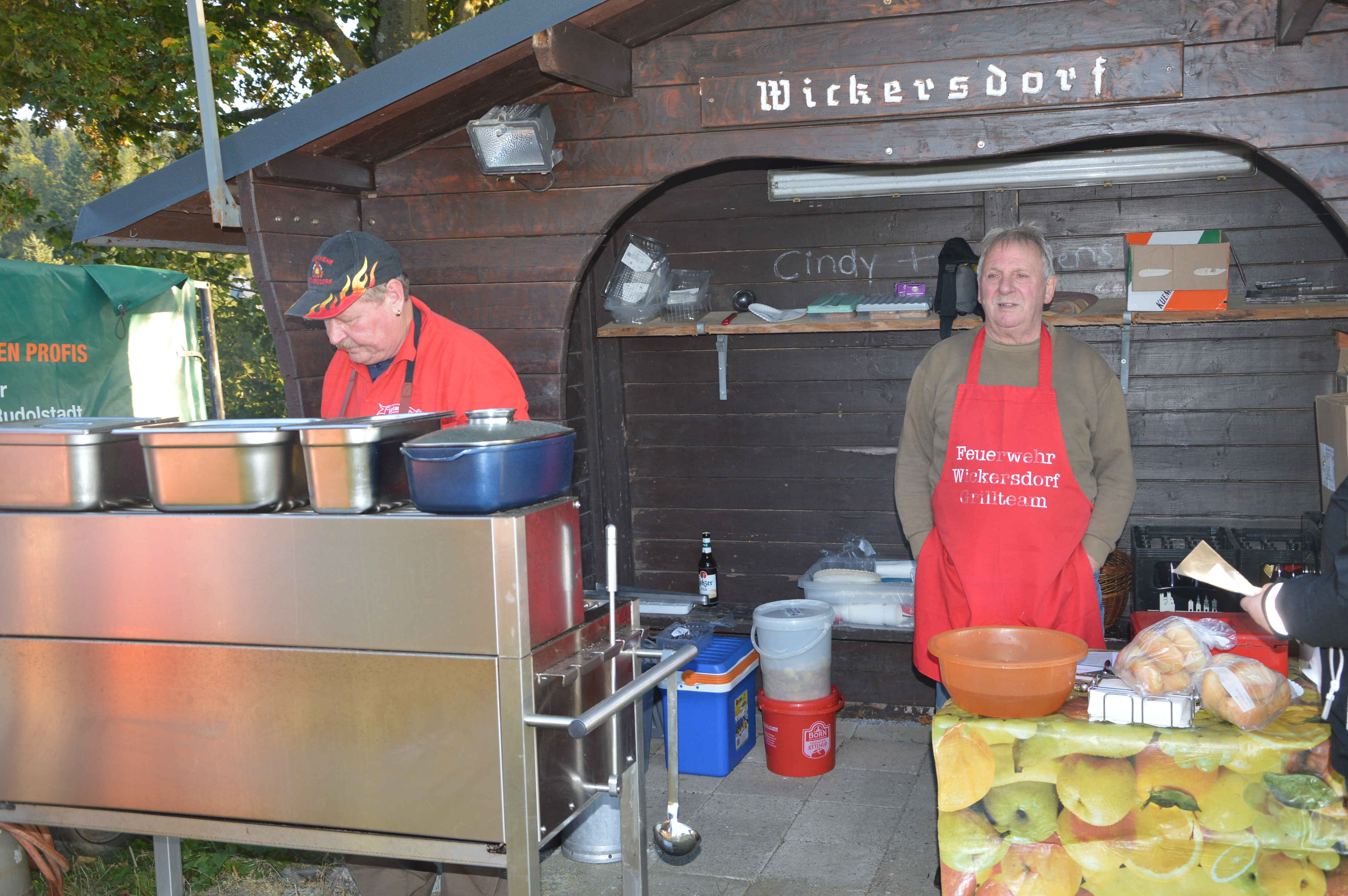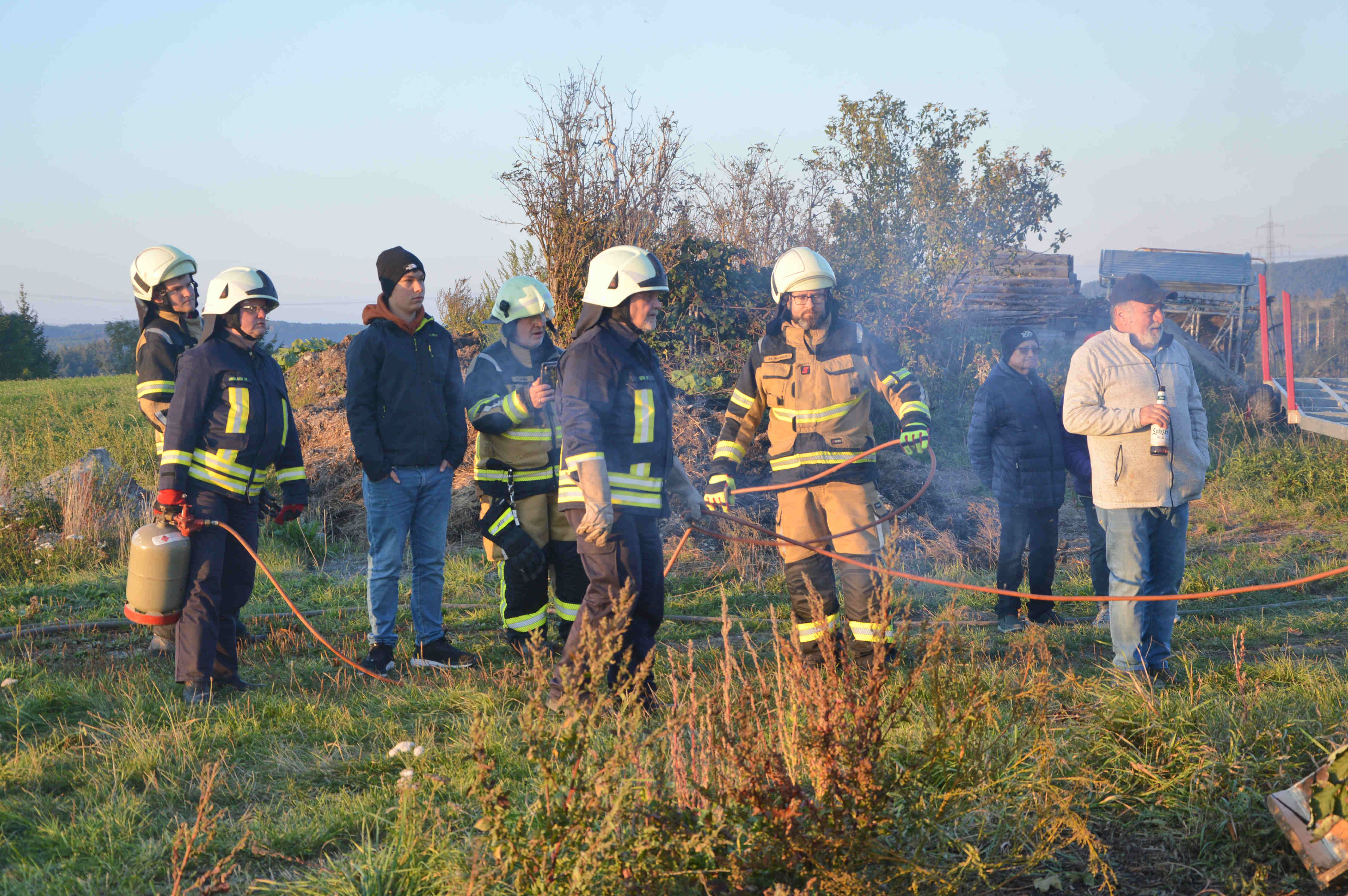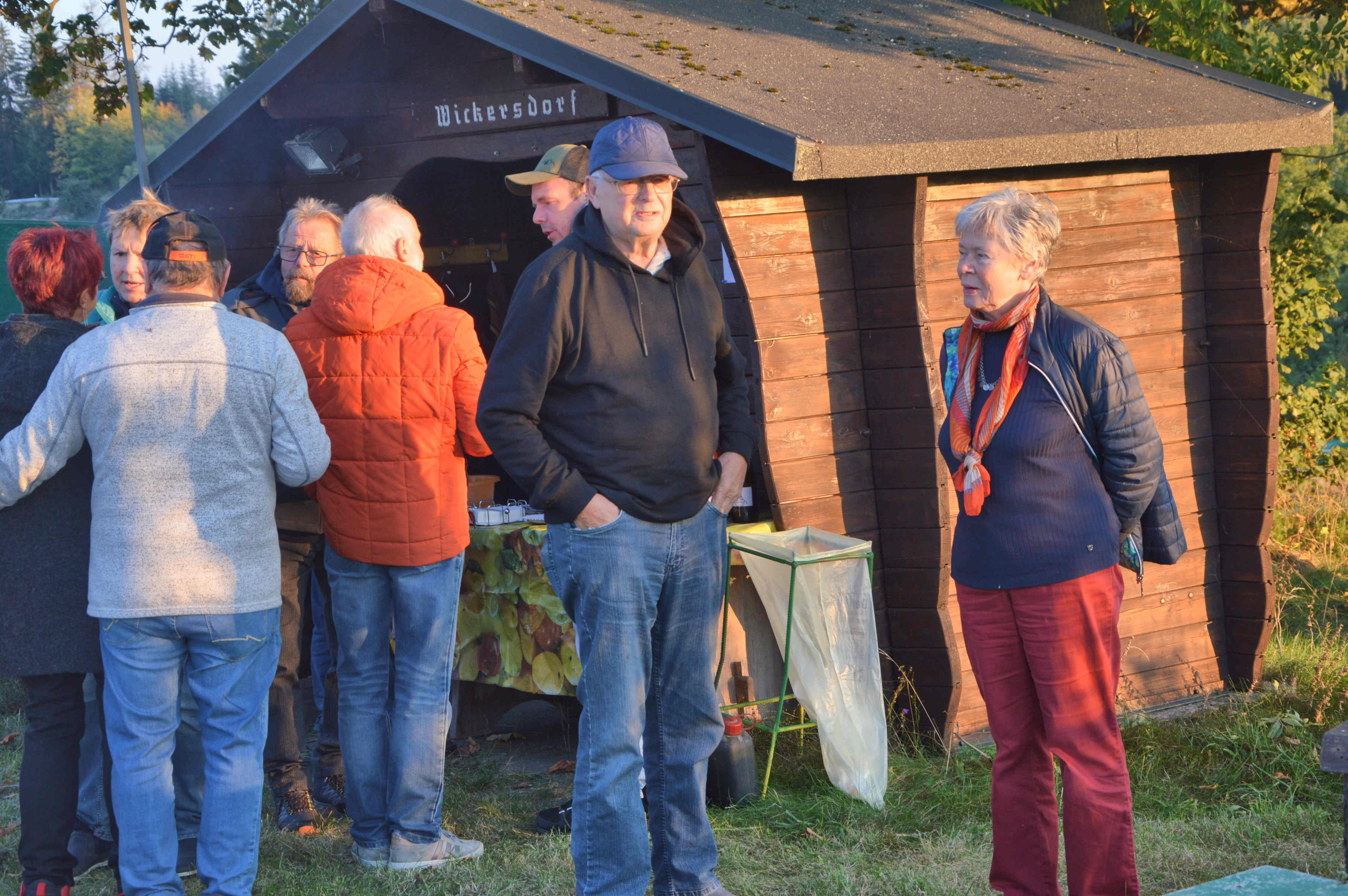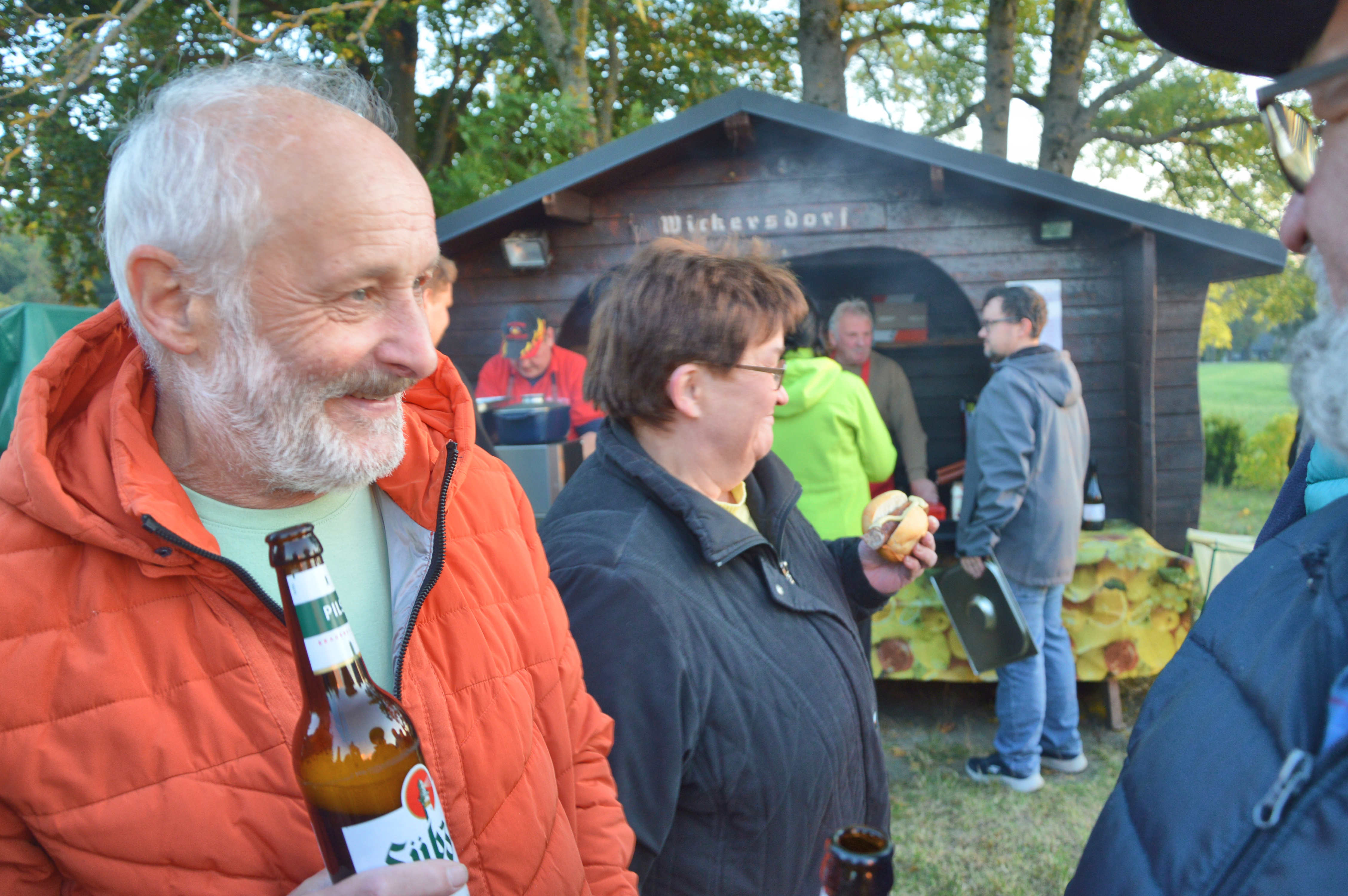 Heute nun, im Jahre 2025, wo die Freiheit wohl grenzenlos scheint, gab es für die Wickersdorfer natürlich auch wieder ein bombastisches Lagerfeuer am Vorabend unseres Nationalfeiertages. Im Gegensatz zum 30 April musste natürlich nicht erst ein Maibaum aufgestellt werden, so dass sich die Gäste gleich hinten am Brandplatz versammelten. Die ersten Gäste waren bereits um 17.00 Uhr angekommen. So hatte ich die Botschaft von Bernd Liebner verstanden und dann auch in meiner Einladung weitergegeben. Dass Bernd und Gerd dann erst etwa eine halbe Stunde später ihren Rost in Gang setzten, blieb aber ohne negative Folgen.