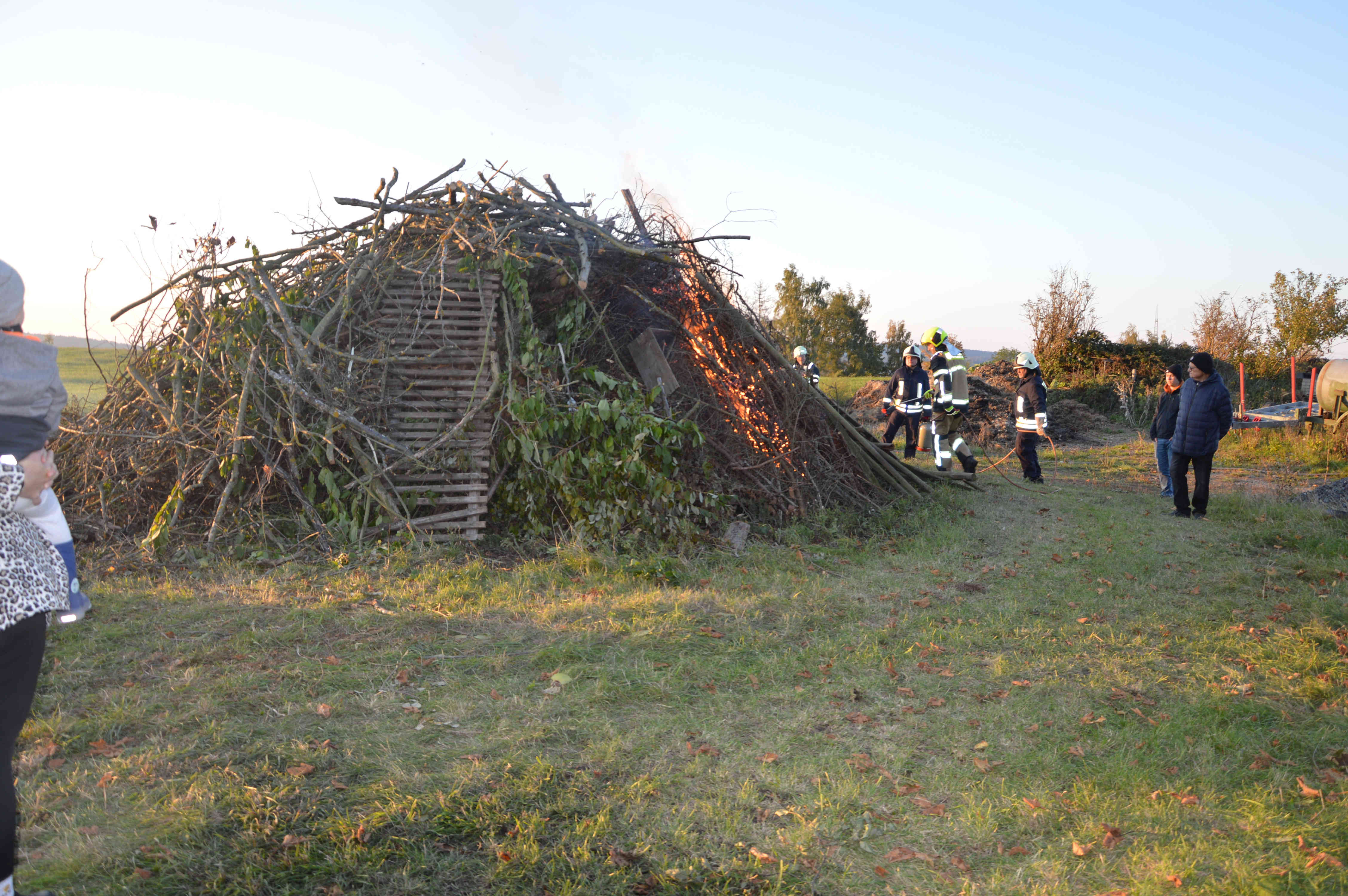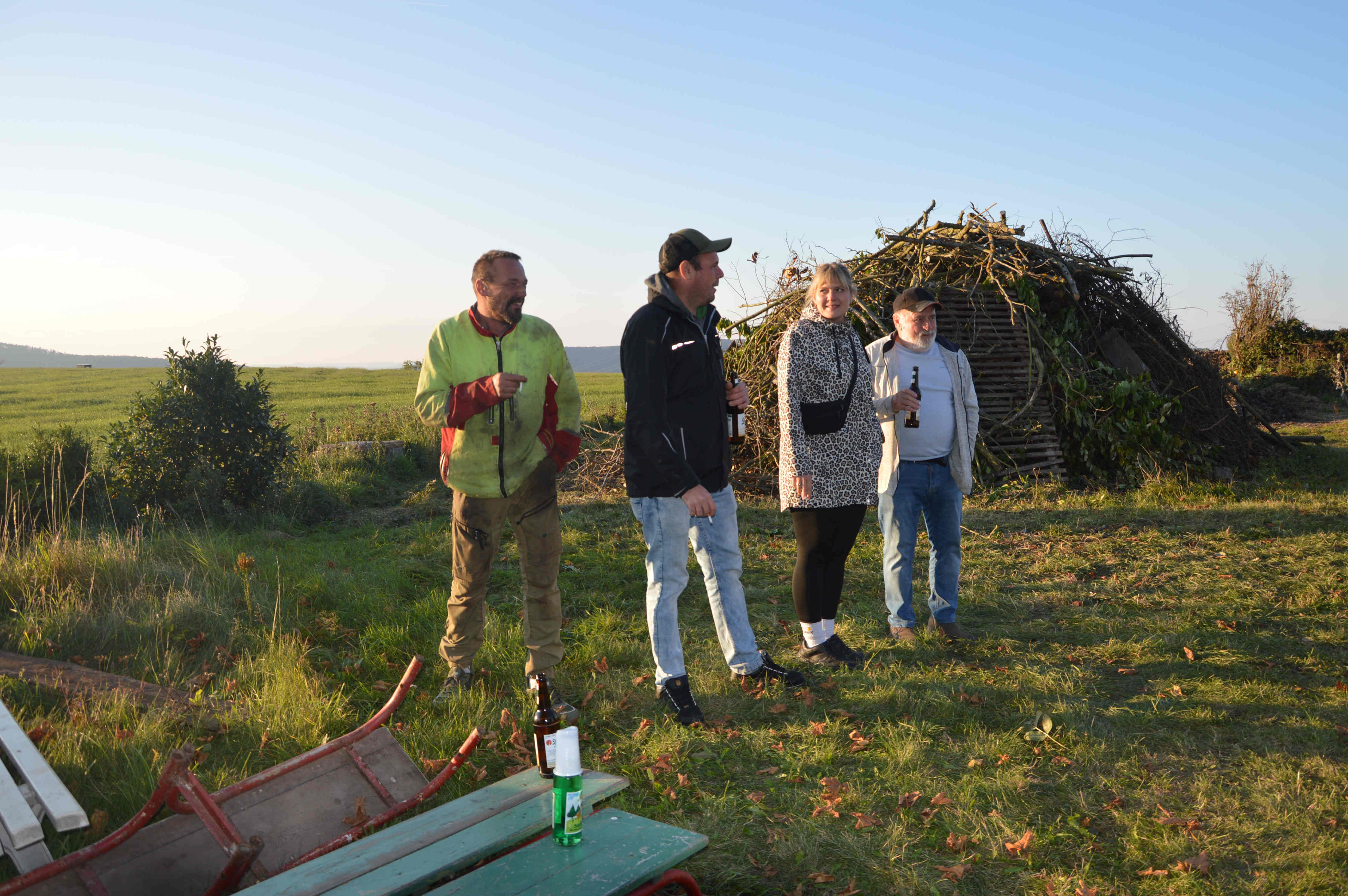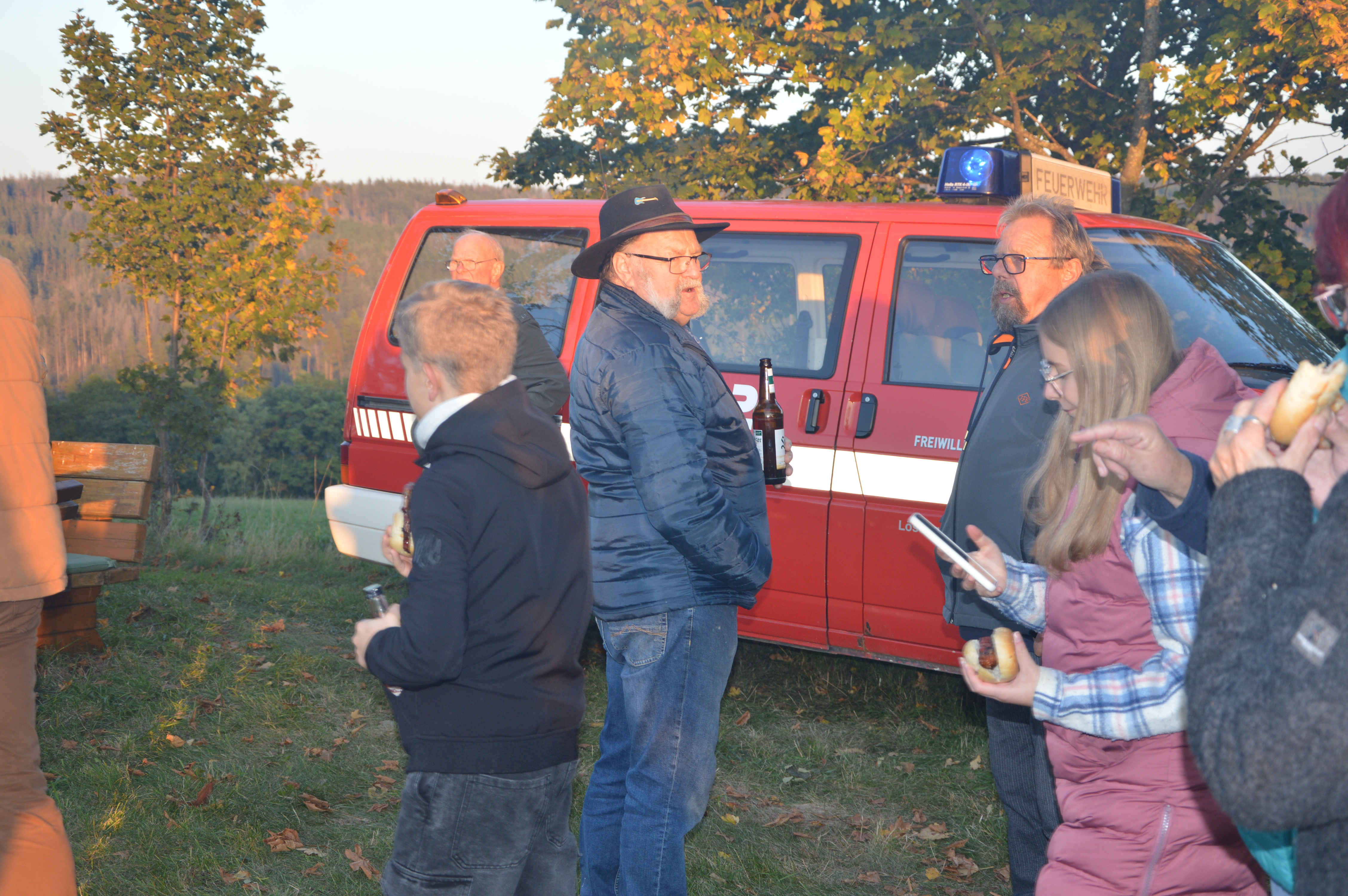 Als um 18.30 Uhr dann der Holzhaufen in Brand gesteckt wurde, lief die die Versorgung der Gäste bereits auf vollen Touren und Gäste waren auch reichlich vorhanden. Es kamen dann im Laufe des Abends auch immer noch Leute dazu und die Stimmung rund um den brennenden Stapel war wunderbar ausgelassen. Das zog sich auch trotz der relativ kühlen Witterung bis spät in die Nacht hin. In immer wieder untereinander wechselnden Gruppen stand das Volk beieinander und beschäftigte sich mit mehr oder weniger ernsthaften Gesprächen.