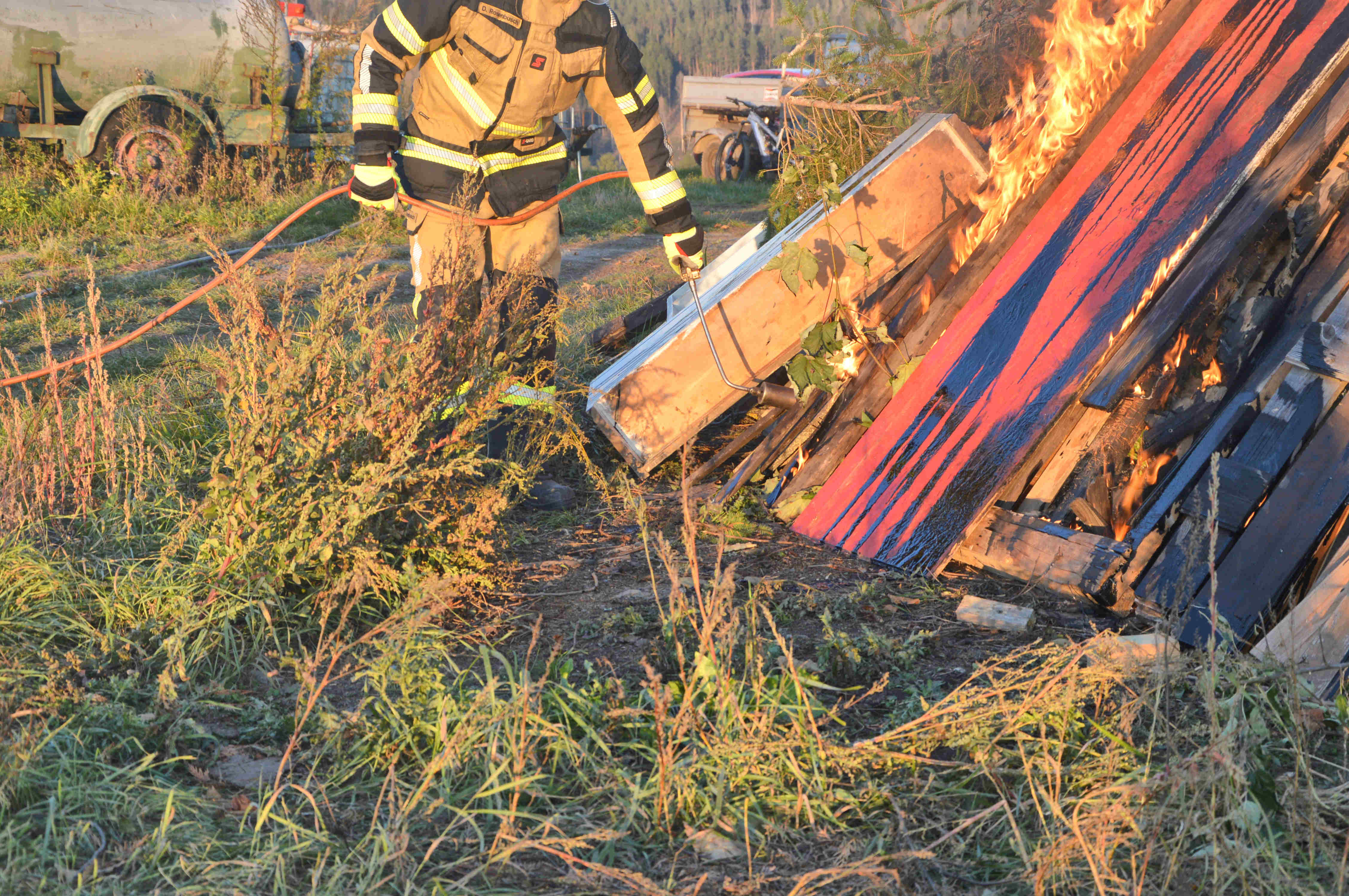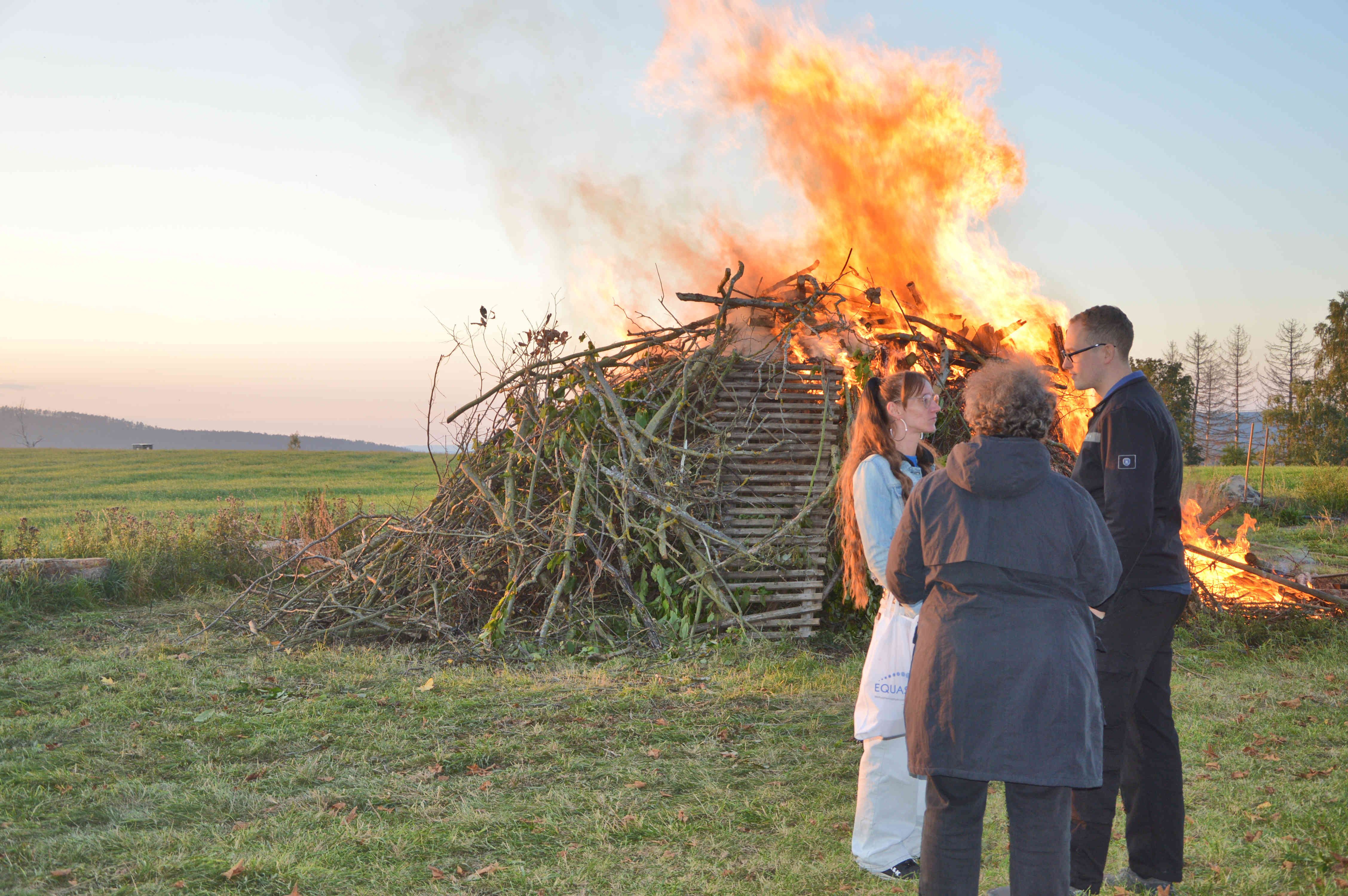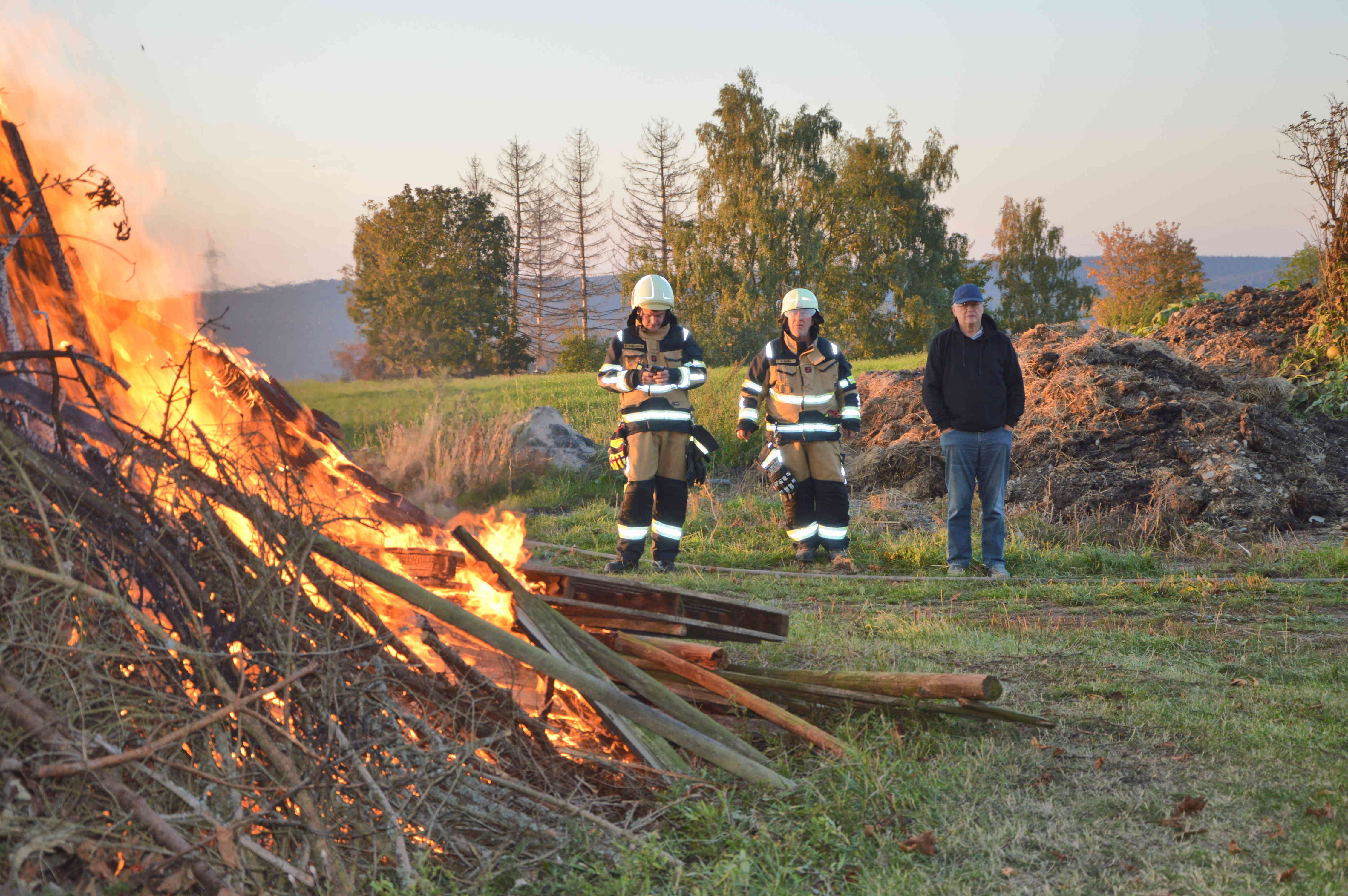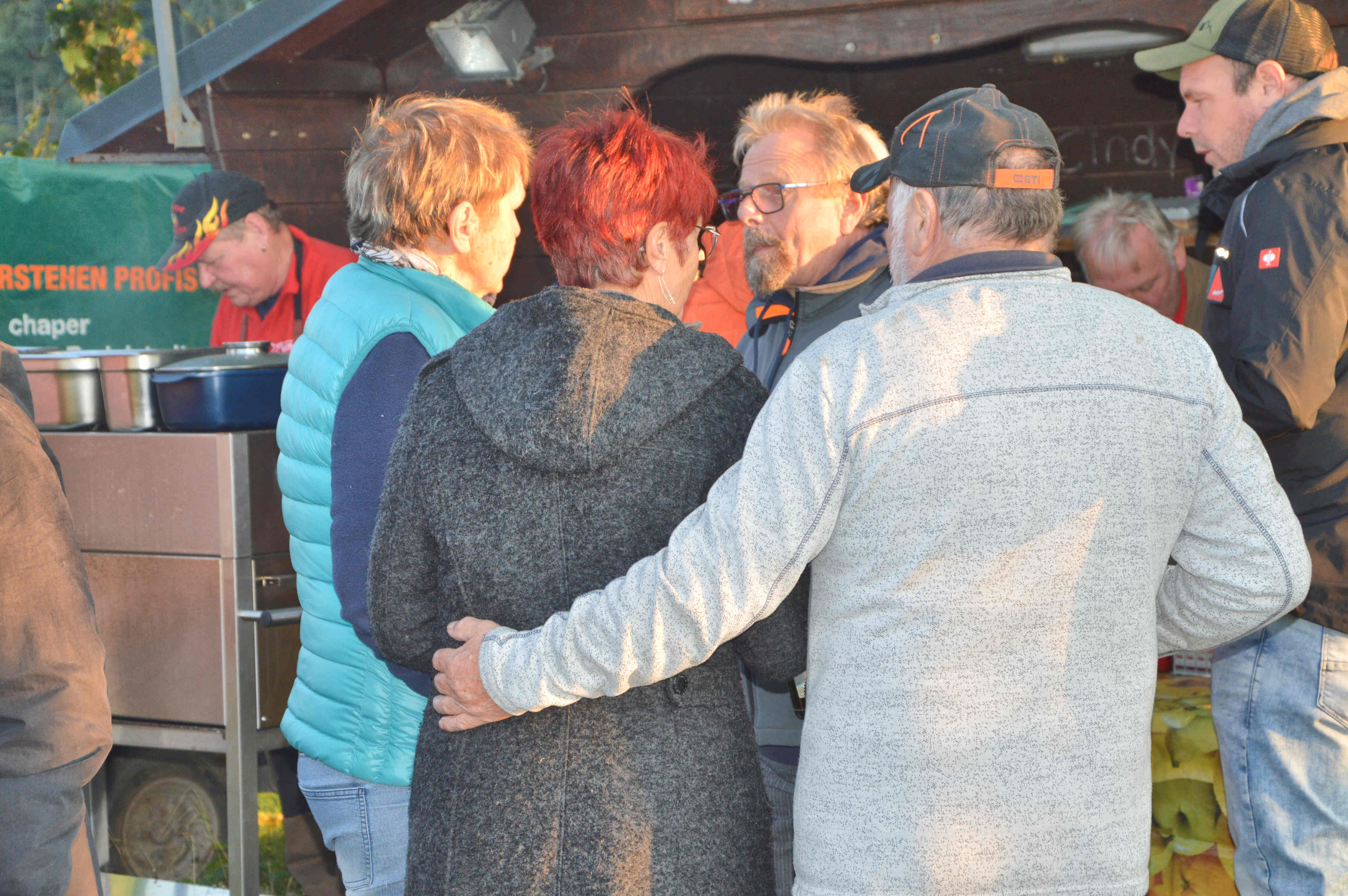Als um 18.30 Uhr dann der Holzhaufen in Brand gesteckt wurde, lief die die Versorgung der Gäste bereits auf vollen Touren und Gäste waren auch reichlich vorhanden. Es kamen dann im Laufe des Abends auch immer noch Leute dazu und die Stimmung rund um den brennenden Stapel war wunderbar ausgelassen. Das zog sich auch trotz der relativ kühlen Witterung bis spät in die Nacht hin. In immer wieder untereinander wechselnden Gruppen stand das Volk beieinander und beschäftigte sich mit mehr oder weniger ernsthaften Gesprächen.