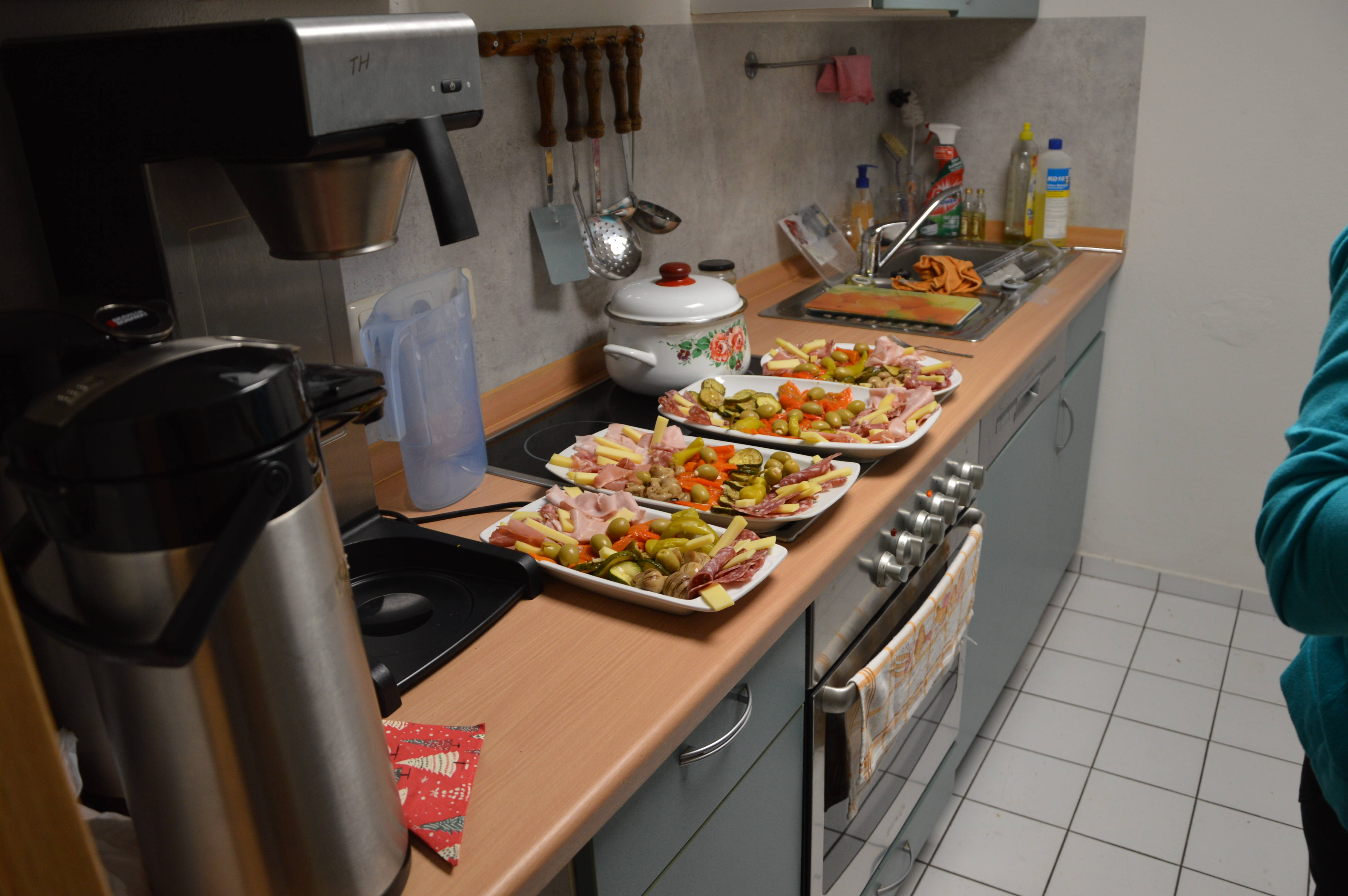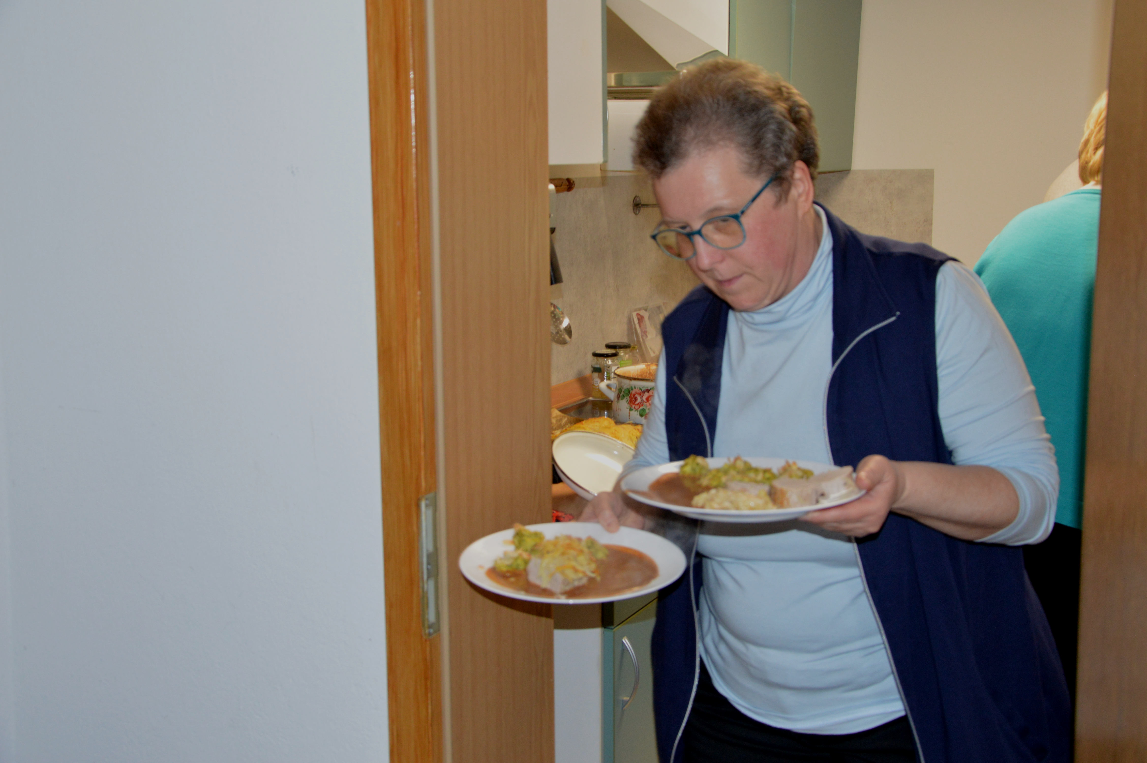 Nachdem nun alles so geschehen war und wir alle in der Runde Platz genommen hatten, widmeten wir uns erst einmal dem Kaffeetrinken. Das ist jeweils ein Teil des Geschehens, wo auch Ingrid vorübergehend mal mit am Tisch sitzt. Diese Phase dauerte allerdings auch nicht gerade ewig lange, denn soweit ich das mitbekam, stand gleich im Anschluss die Vorbereitung des Abendbrotes auf dem Programm. An dieser Stelle war dann allerdings auch Ingrid auf Hilfe, in diesem Fall von Undine, angewiesen.