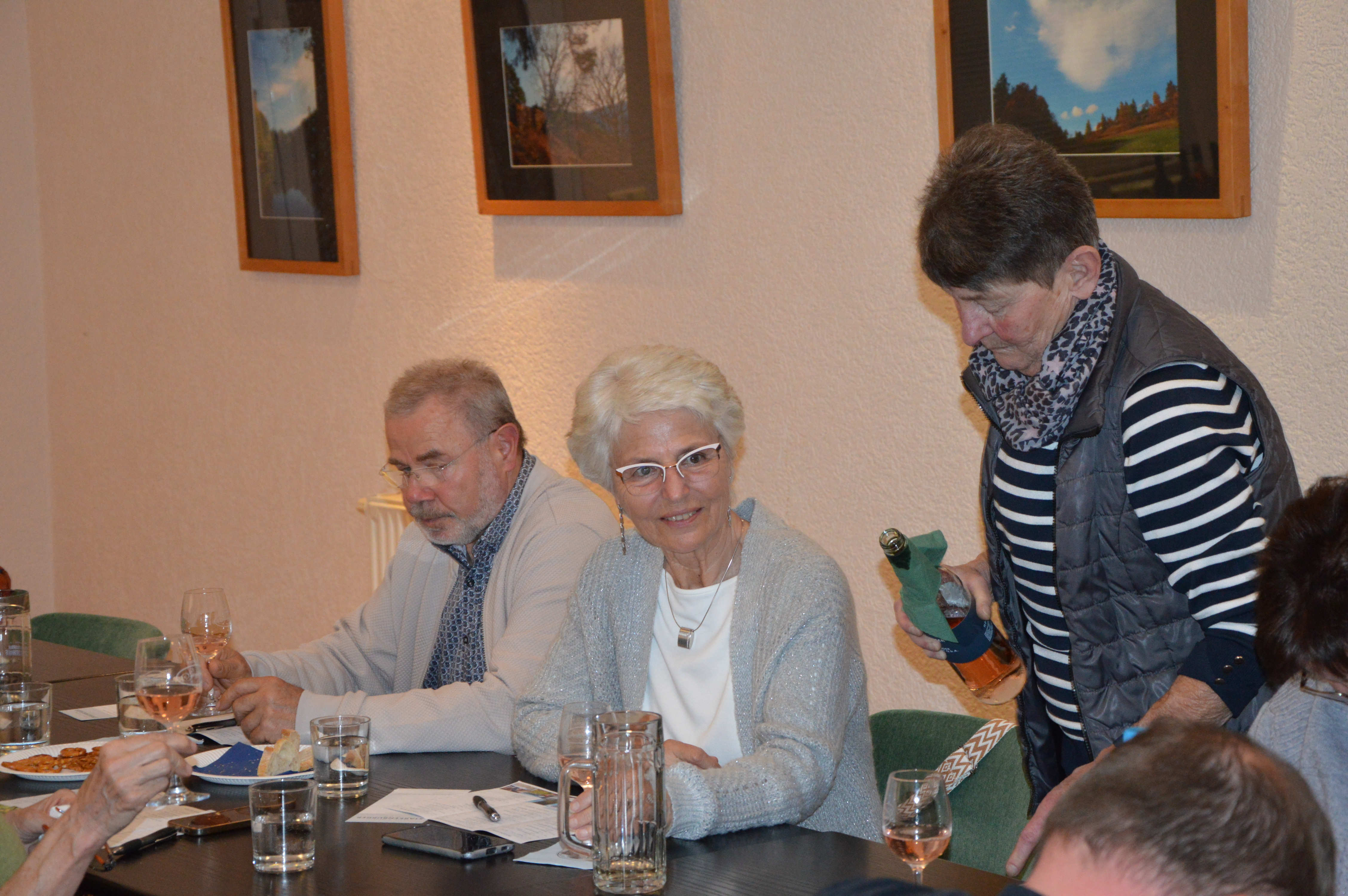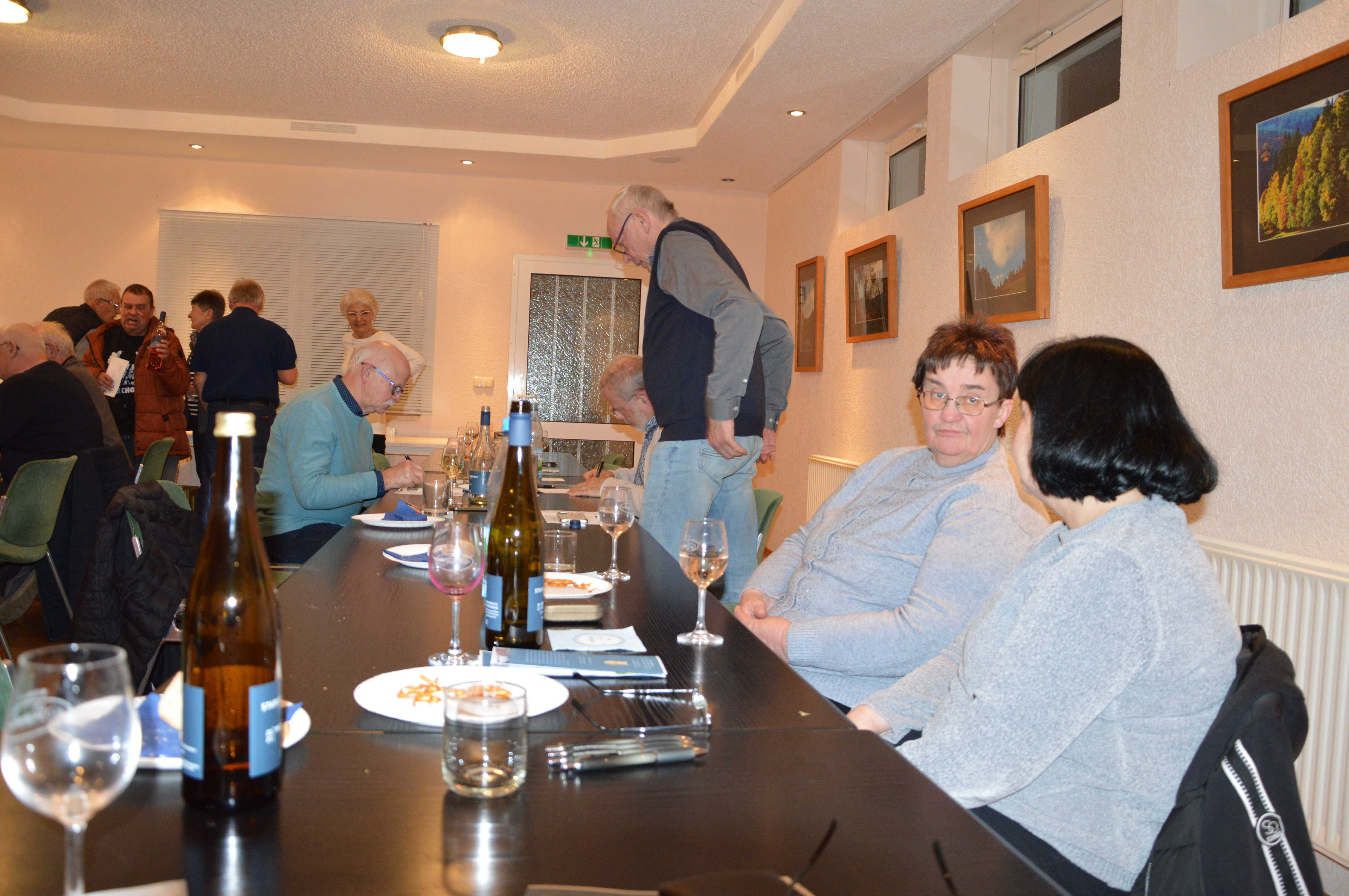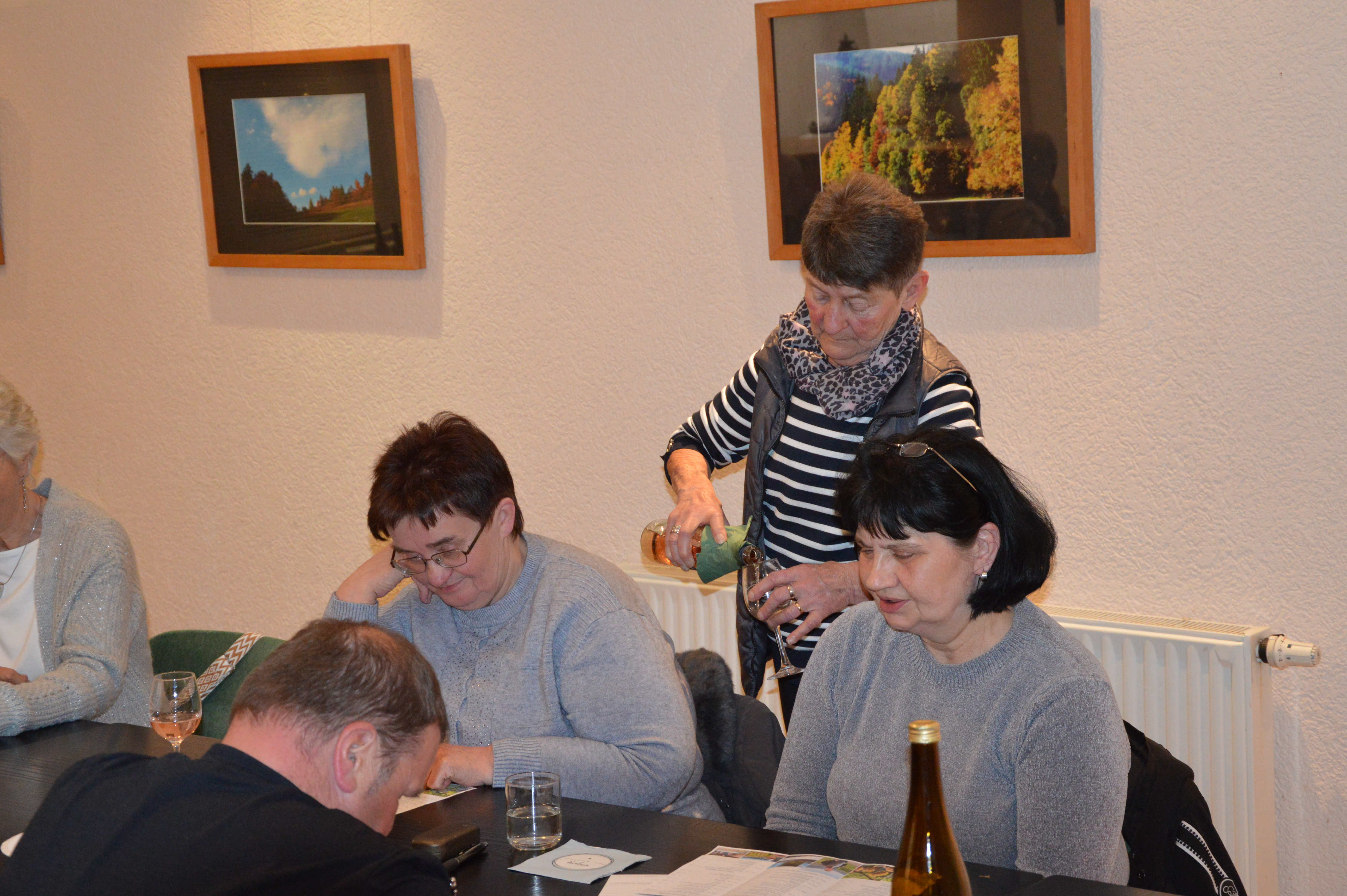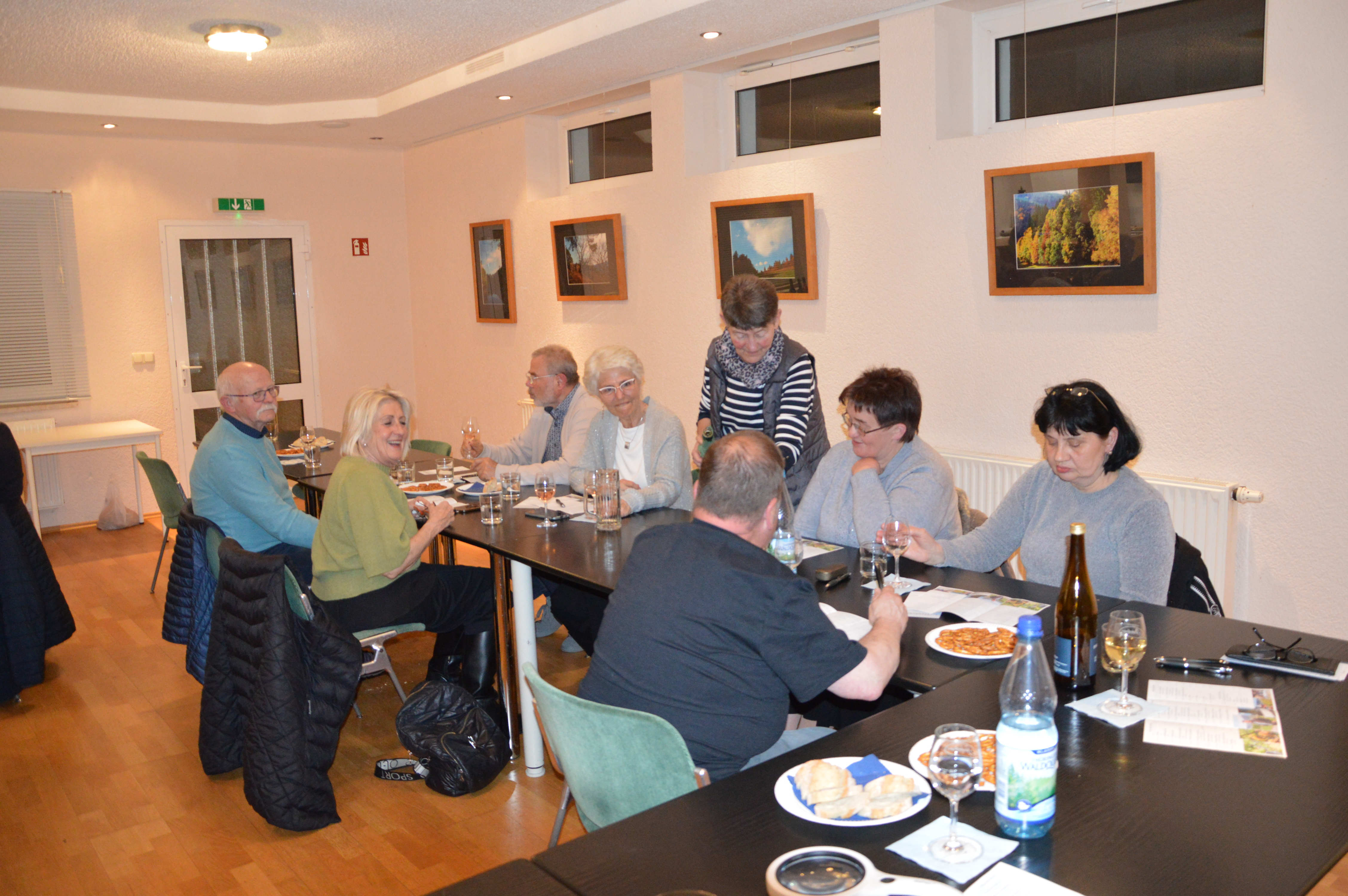 Abgesehen davon war natürlich der heurige Vortrag über den Weinanbau an der Mosel wieder eine sehr fröhliche Veranstaltung. Selbstverständlich hatten Wagners auch ein paar Kostproben ihres abwechslungsreichen Angebotes dabei. Damit versorgten Karin, unterstützt von Uli, die anwesenden Gäste, was, wie immer, zu einer recht ausgelassenen Stimmung führte. Wie wir es eben von Heinz‘ Vorträgen gewöhnt sind.