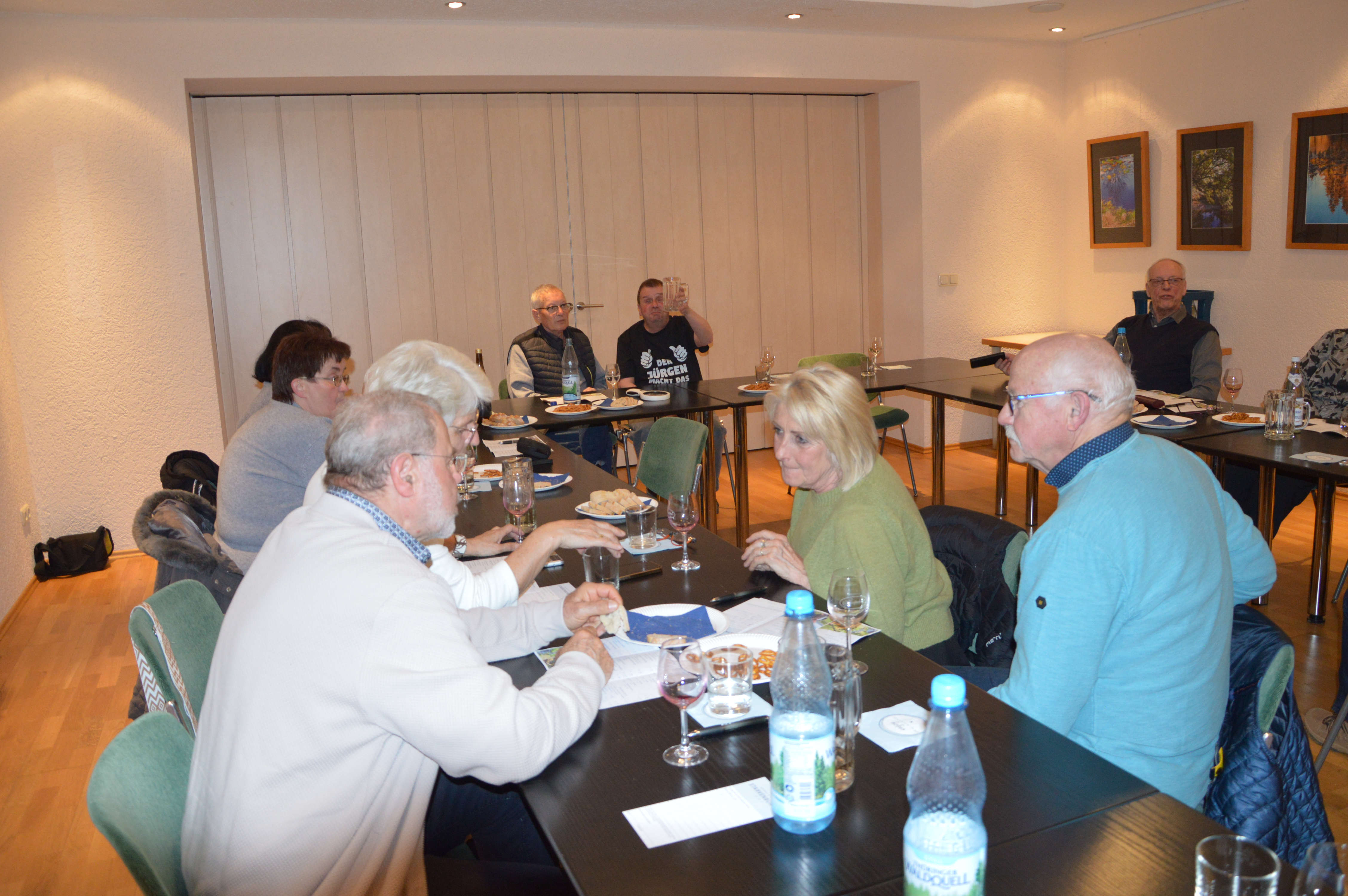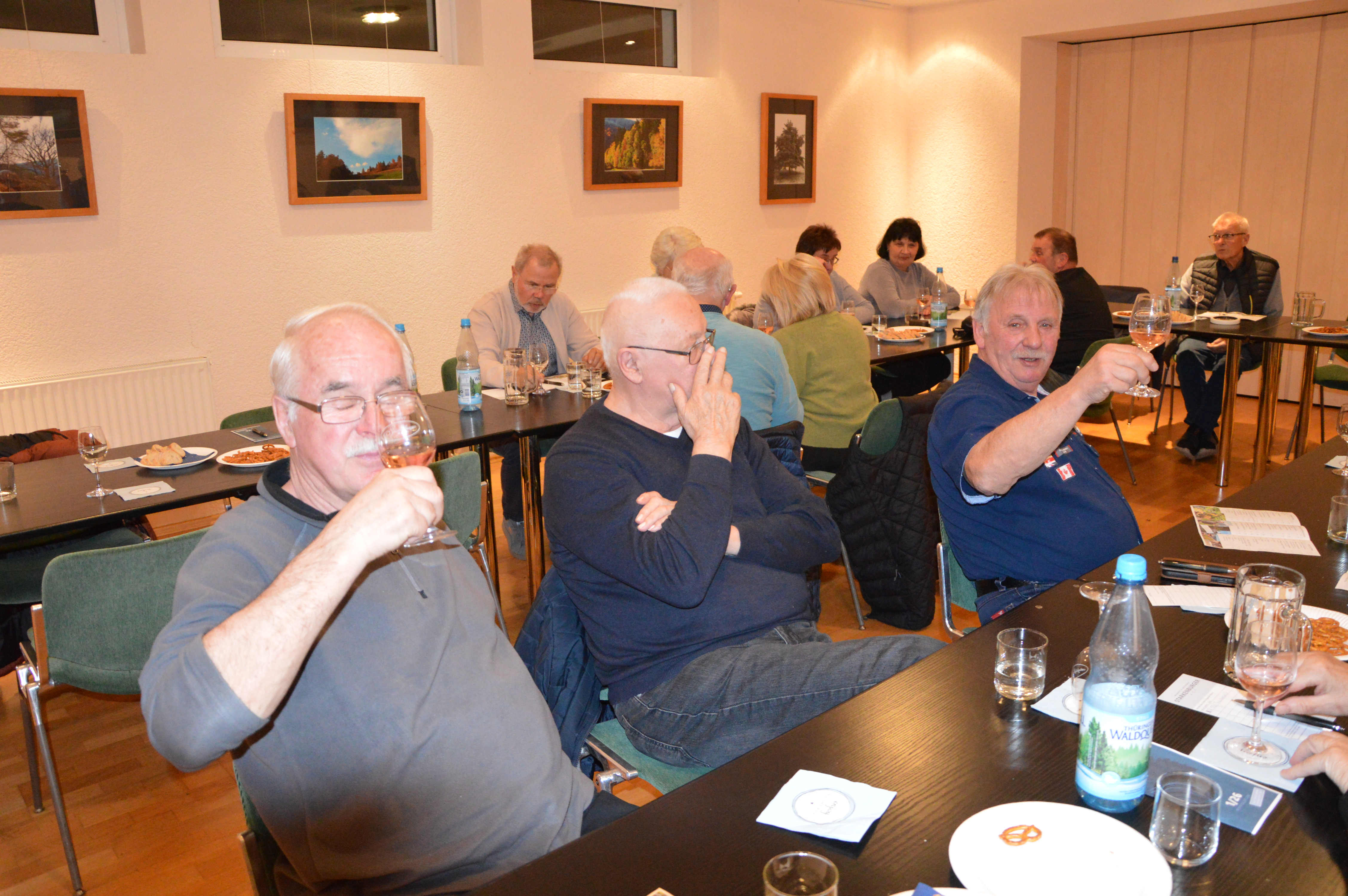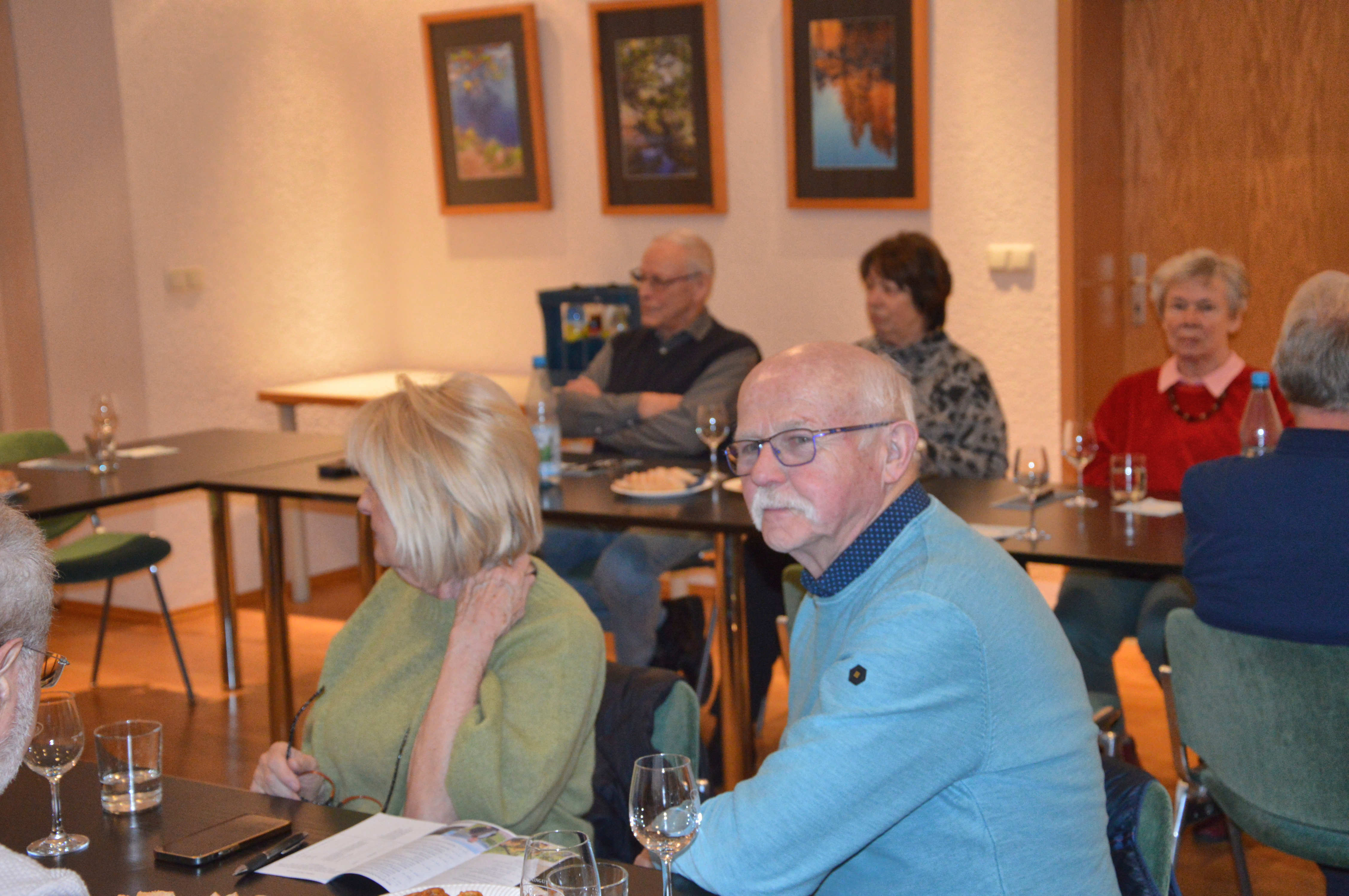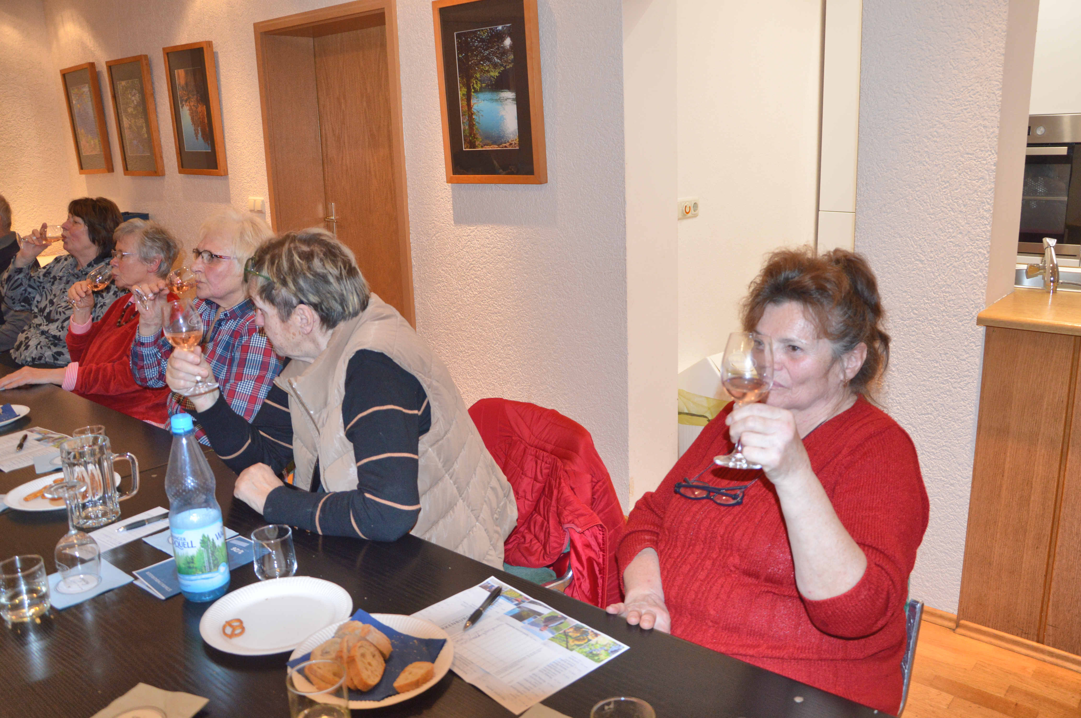 Abgesehen davon war natürlich der heurige Vortrag über den Weinanbau an der Mosel wieder eine sehr fröhliche Veranstaltung. Selbstverständlich hatten Wagners auch ein paar Kostproben ihres abwechslungsreichen Angebotes dabei. Damit versorgten Karin, unterstützt von Uli, die anwesenden Gäste, was, wie immer, zu einer recht ausgelassenen Stimmung führte. Wie wir es eben von Heinz‘ Vorträgen gewöhnt sind.