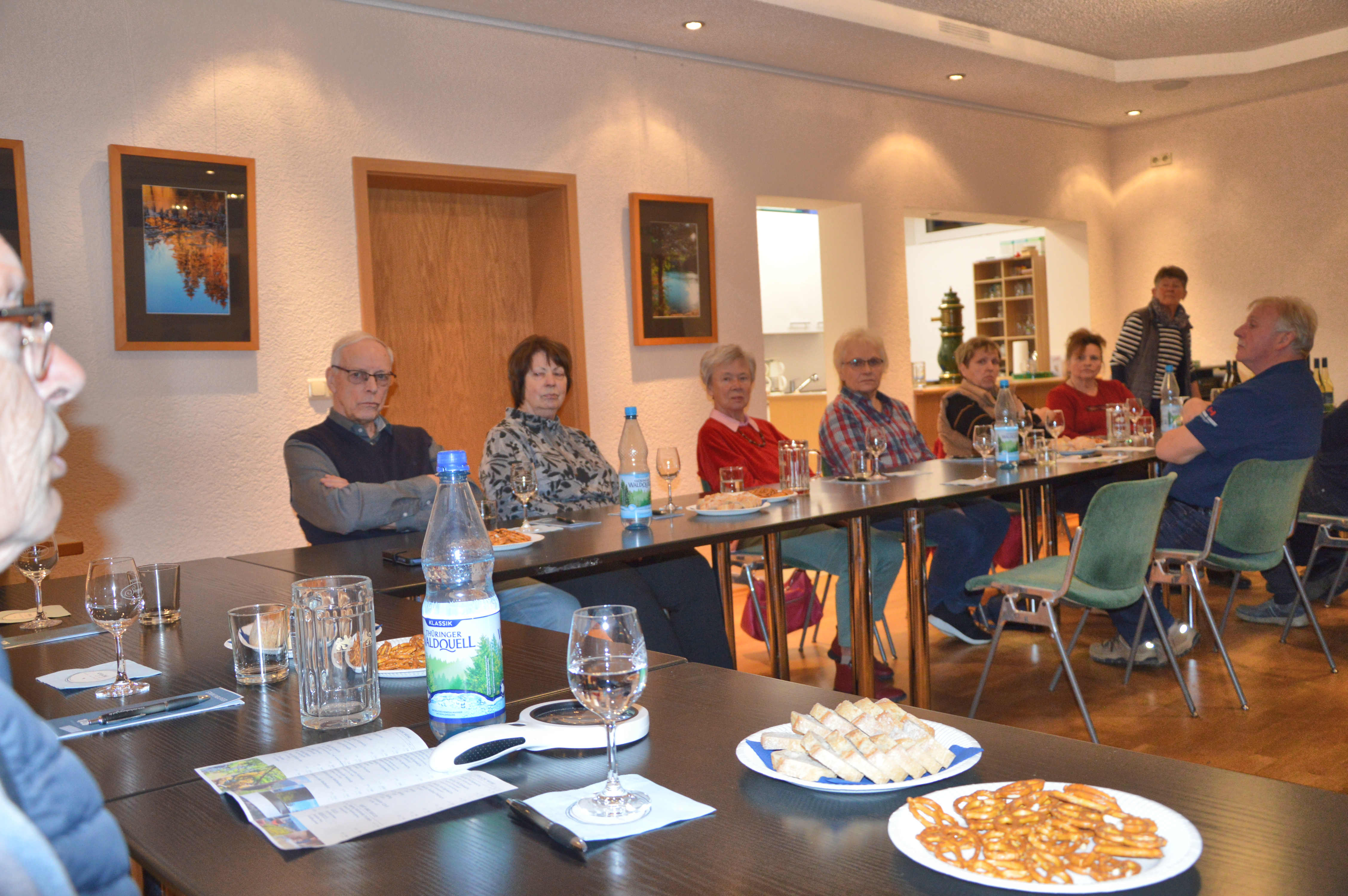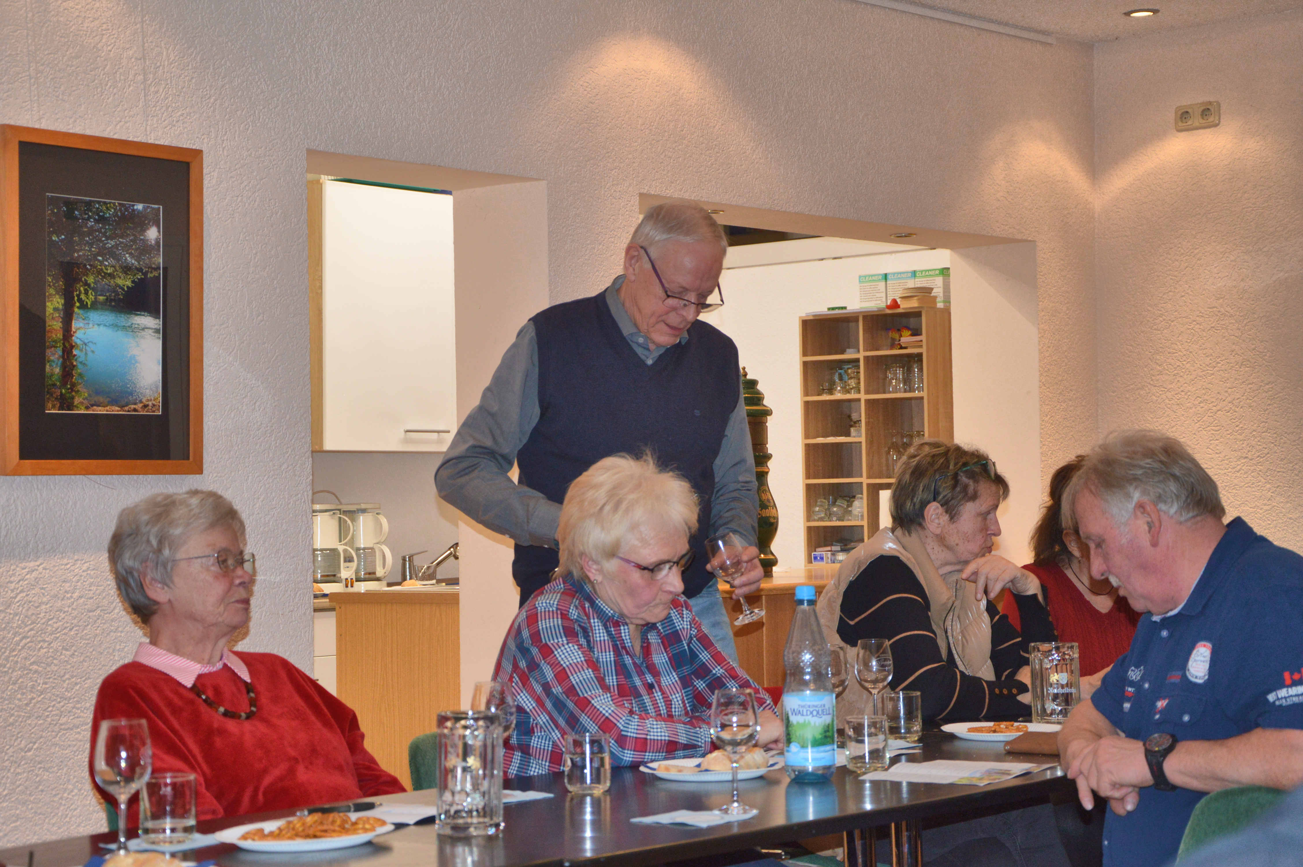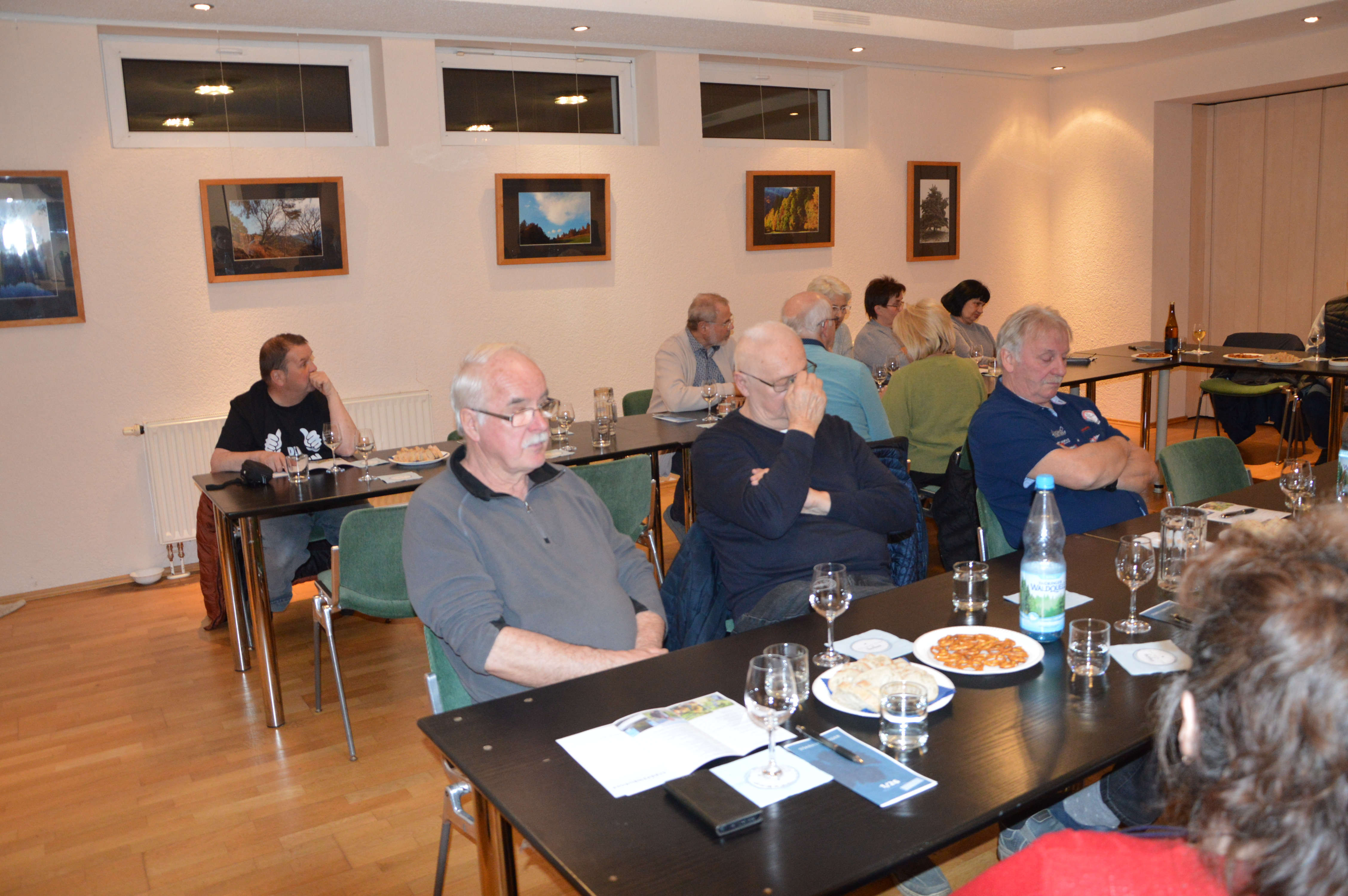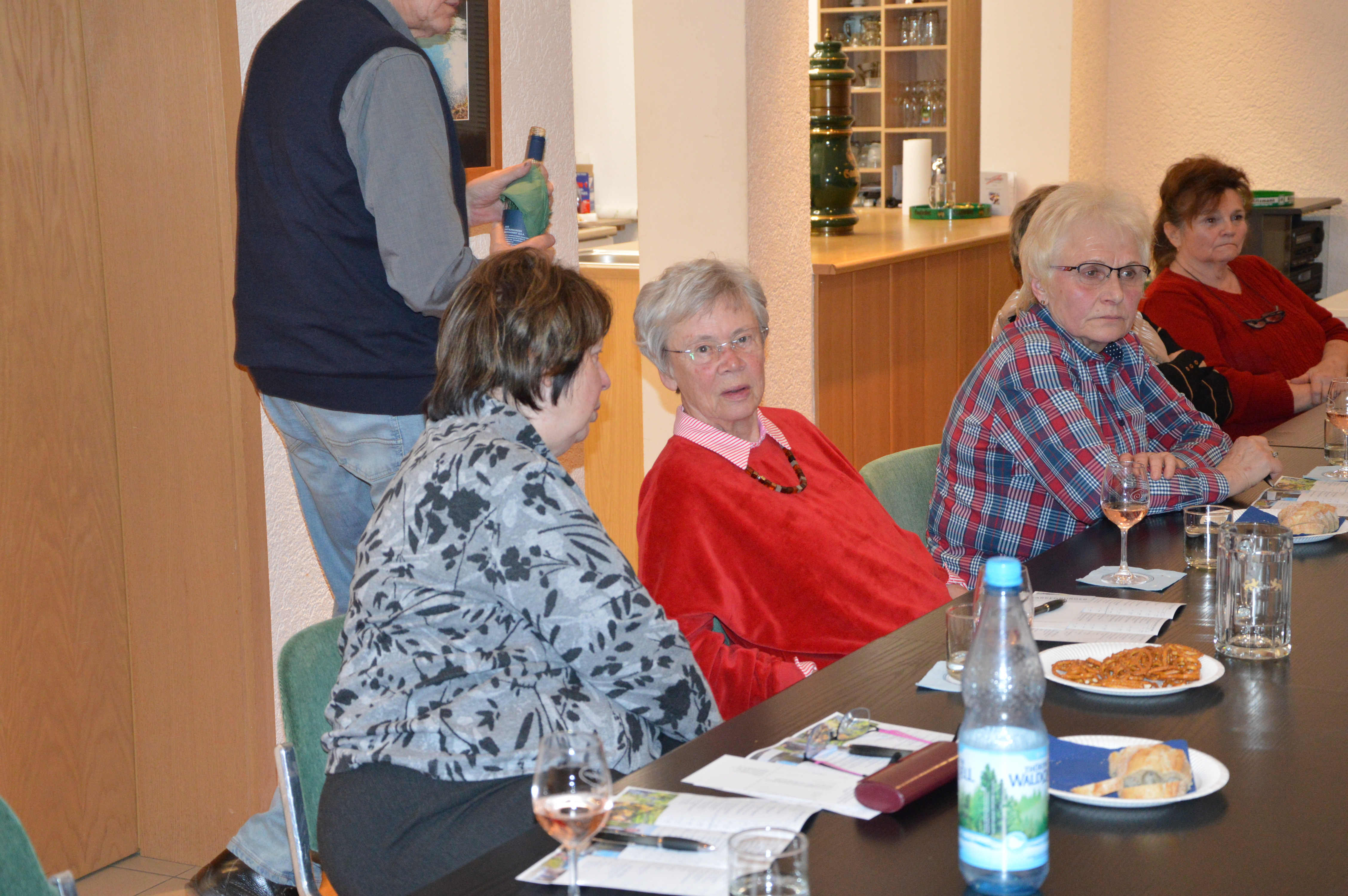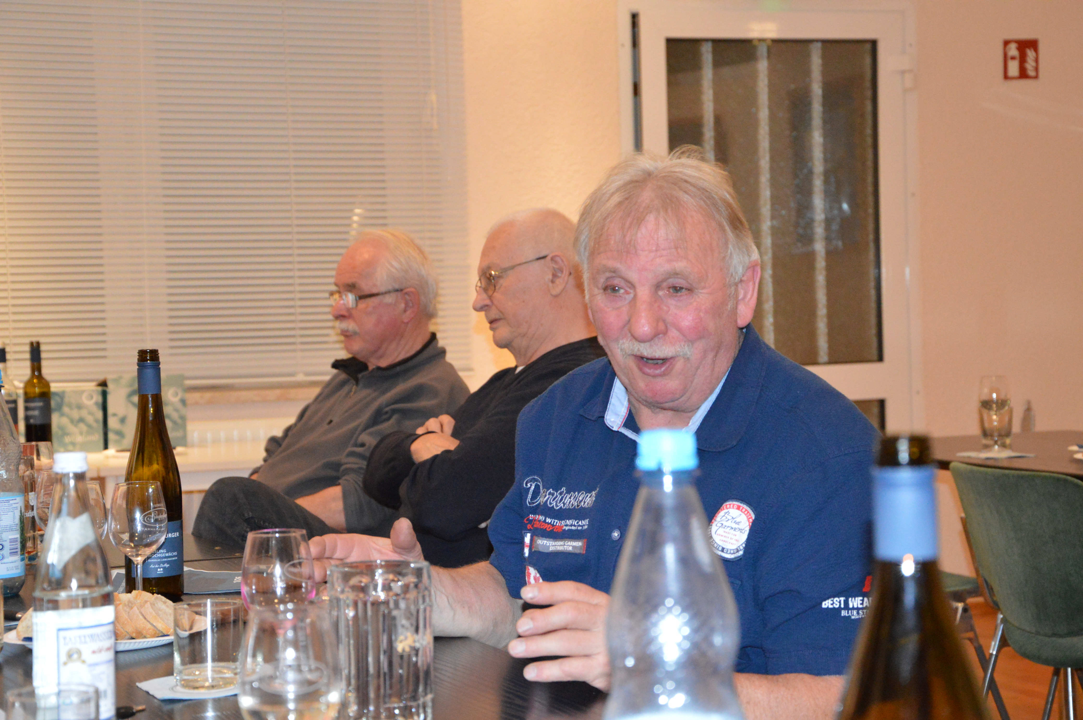 Abgesehen davon war natürlich der heurige Vortrag über den Weinanbau an der Mosel wieder eine sehr fröhliche Veranstaltung. Selbstverständlich hatten Wagners auch ein paar Kostproben ihres abwechslungsreichen Angebotes dabei. Damit versorgten Karin, unterstützt von Uli, die anwesenden Gäste, was, wie immer, zu einer recht ausgelassenen Stimmung führte. Wie wir es eben von Heinz‘ Vorträgen gewöhnt sind.