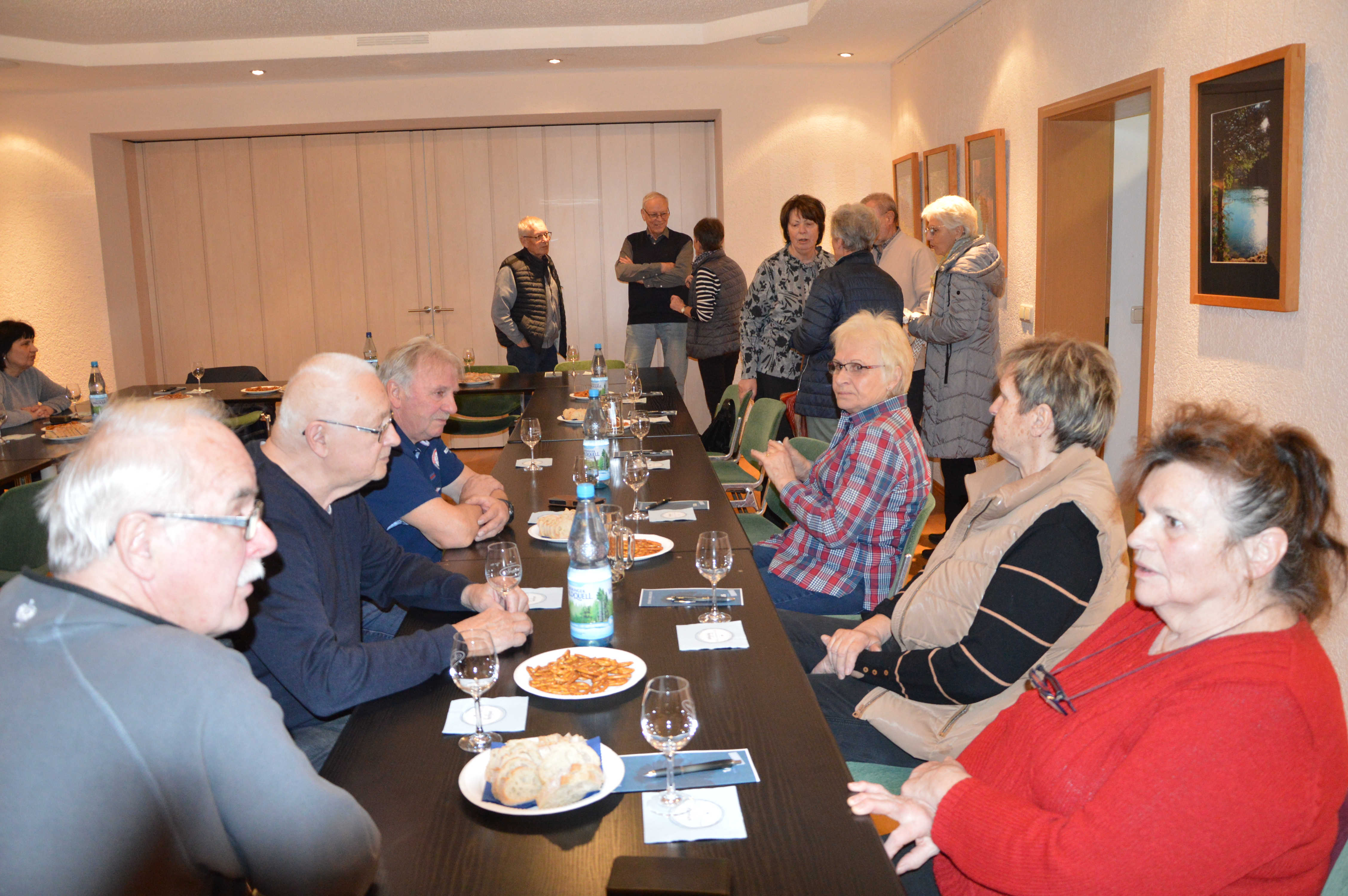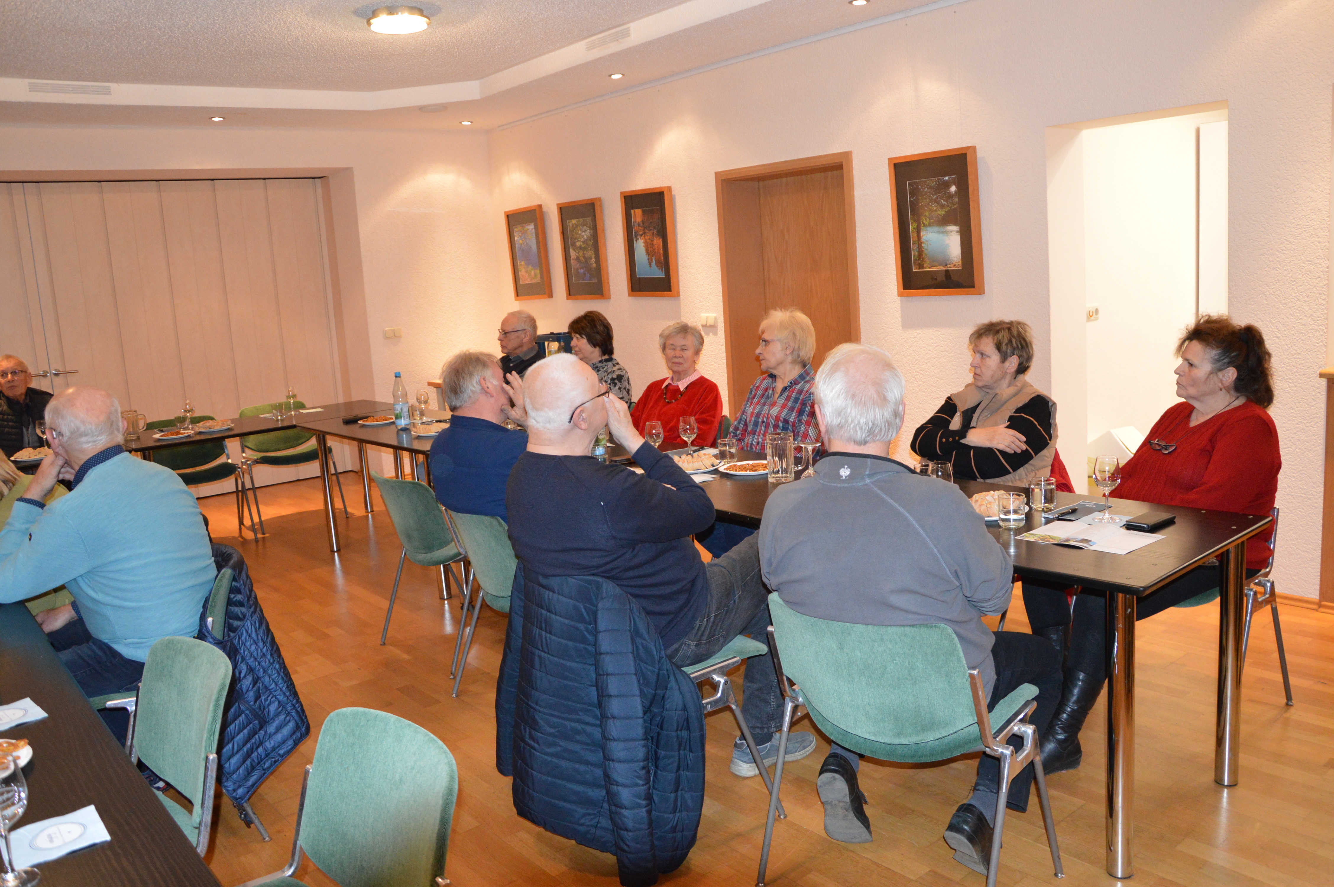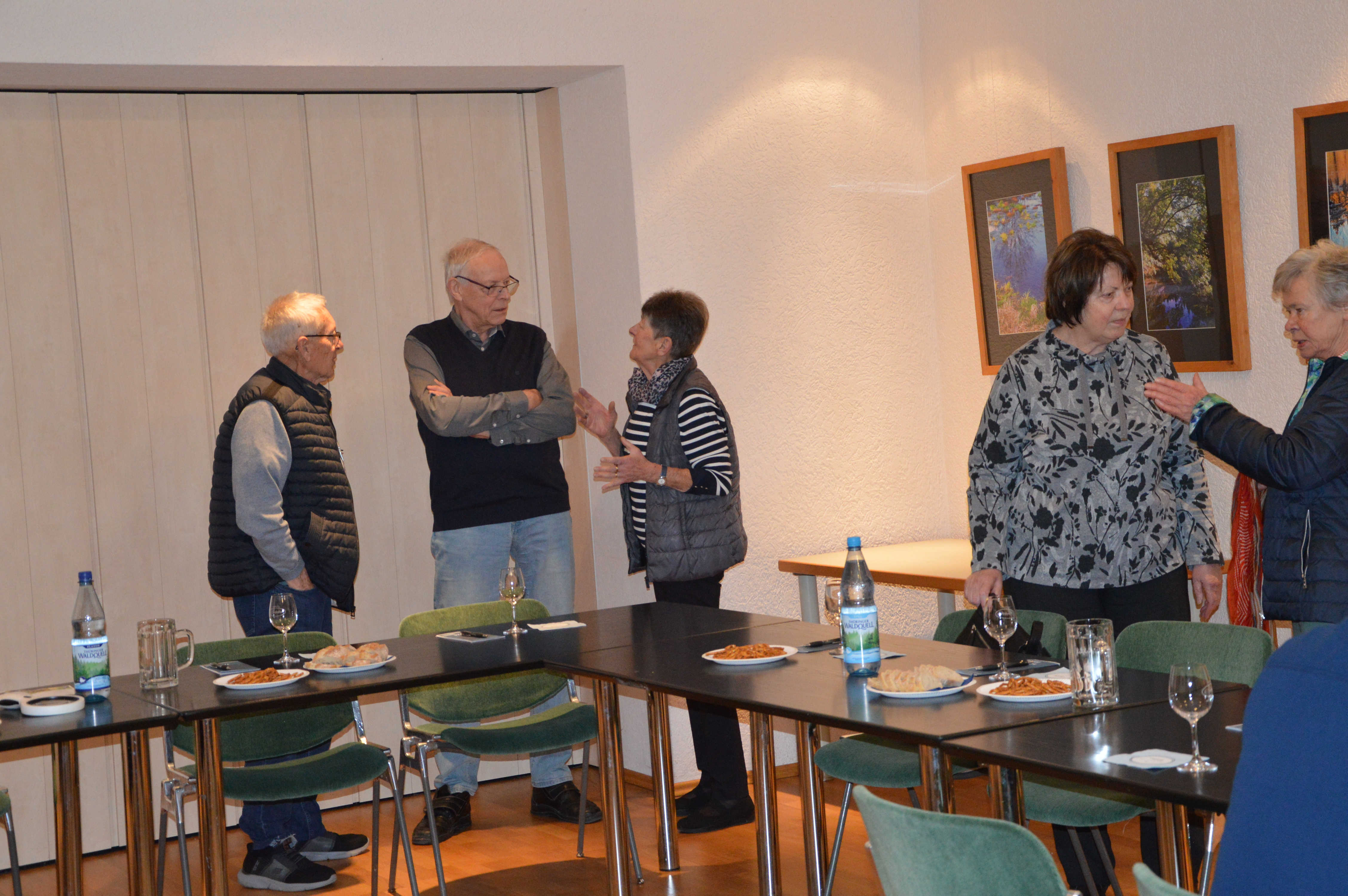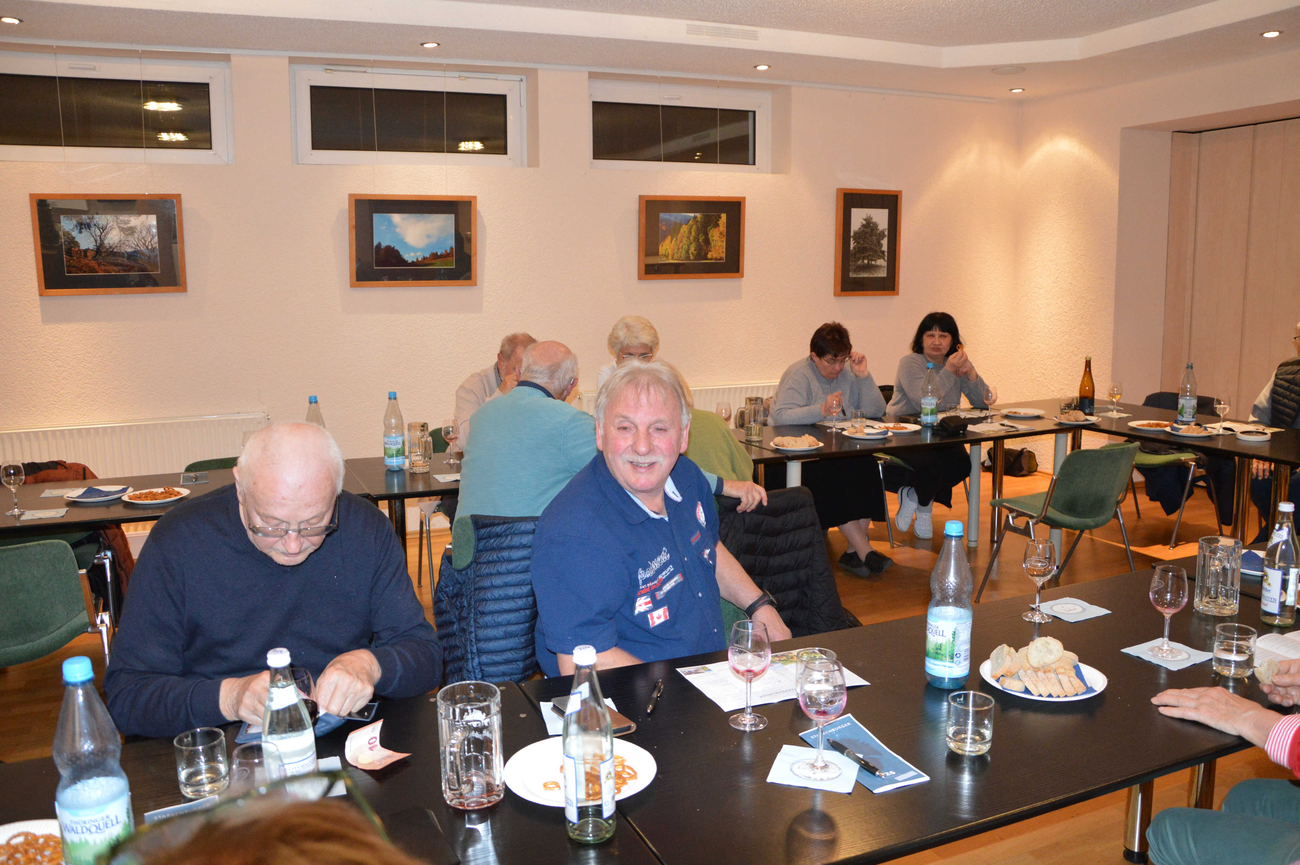 Abgesehen davon war natürlich der heurige Vortrag über den Weinanbau an der Mosel wieder eine sehr fröhliche Veranstaltung. Selbstverständlich hatten Wagners auch ein paar Kostproben ihres abwechslungsreichen Angebotes dabei. Damit versorgten Karin, unterstützt von Uli, die anwesenden Gäste, was, wie immer, zu einer recht ausgelassenen Stimmung führte. Wie wir es eben von Heinz‘ Vorträgen gewöhnt sind.